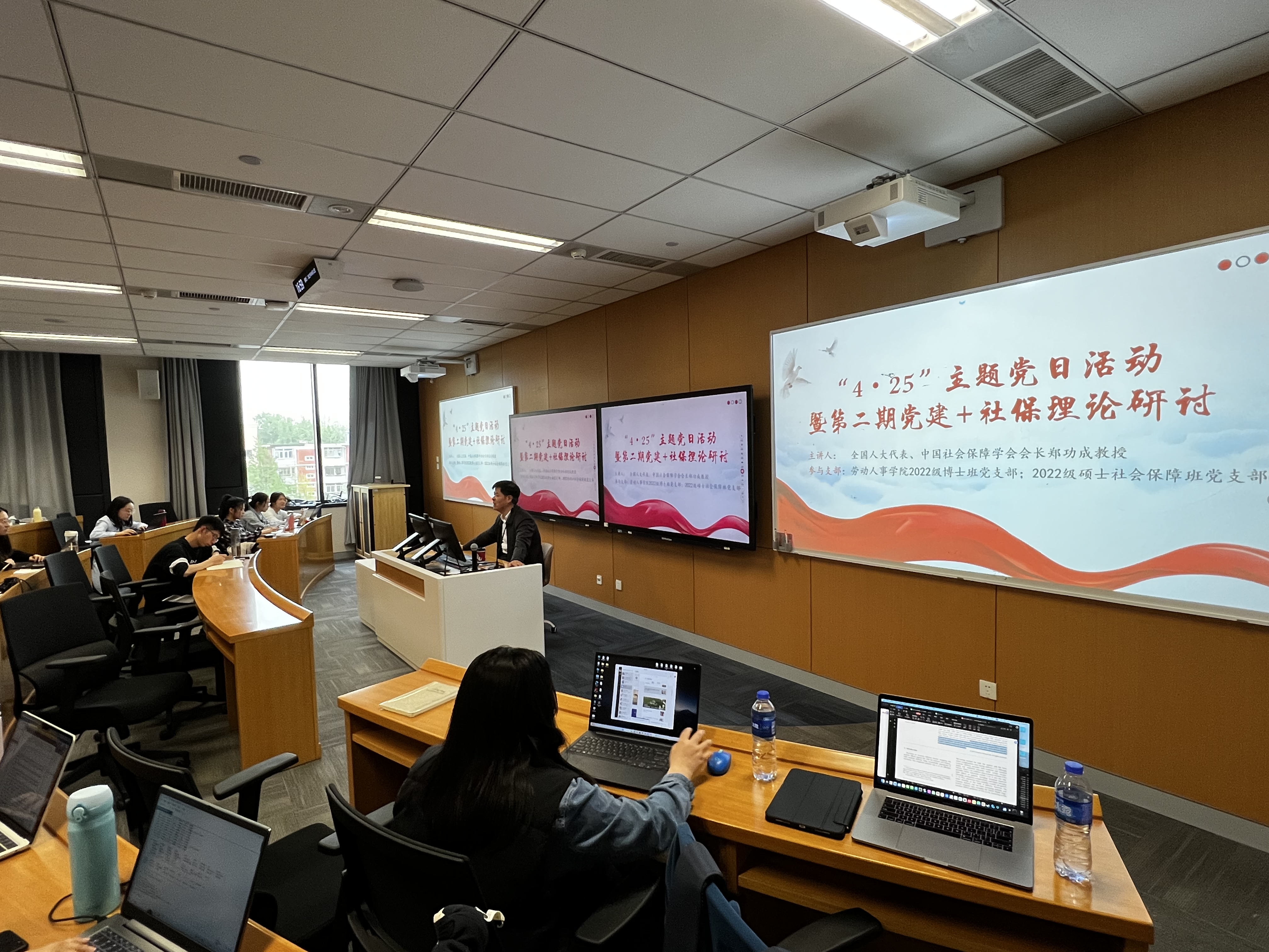 为贯彻落实习近平新时代中国特色社会主义思想主题教育“学思想、强党性、重实践、建新功”的总要求与习近平总书记考察太阳成集团tyc234cc时的重要讲话精神,支部联合2022级博士班党支部开展“4·25”主题党日活动暨第二期“党建+社保理论研讨”。本次活动以 “两会中的社保观察”为主题,分为交流研讨与成果汇报两个环节,由2022级硕士社会保障班党支部书记吴潇主持。