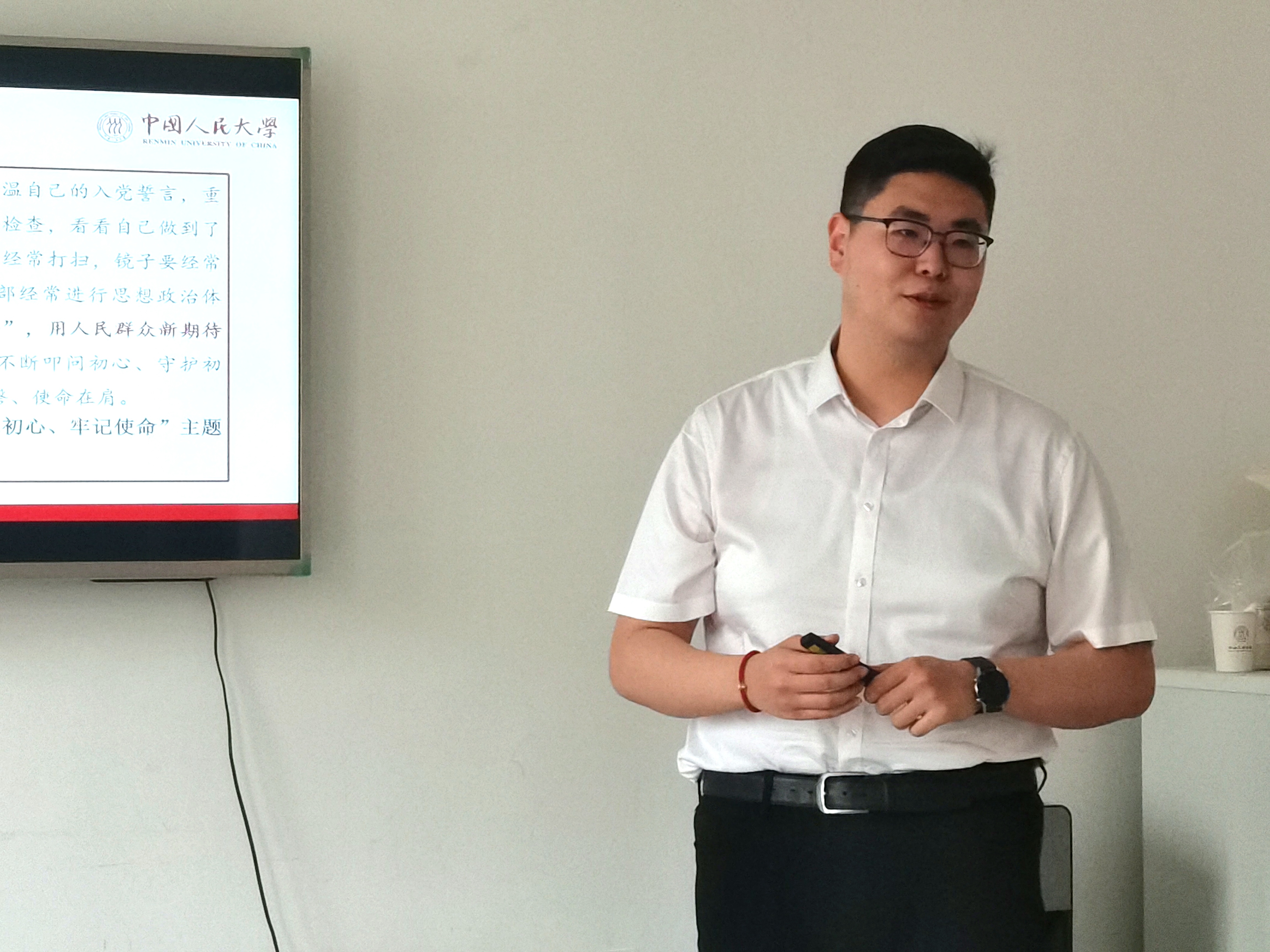 2023年5月17日下午,太阳成集团tyc234cc开展以“学思想悟原理,育栋梁争先锋”为主题的第二期员工读书班,深入学习贯彻习近平新时代中国特色社会主义思想主题教育。本次读书班在求是楼120主题教育专用学习室举行,读书内容为《中国共产党章程》。2021级硕士社会保障班党支部纪检委员姜龙钰进行领学。