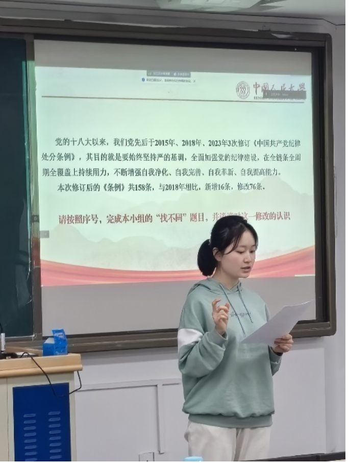 在本次主题党日活动中,本科第三党支部和2023级硕士劳动关系班党支部共同参与学习、研讨分享和知识问答等丰富多样的主题党日学习环节,加强了支部成员间的沟通,进一步加深了与会同志对党纪党规的认识,使其明白纪律是管党治党的戒尺,也是党员约束自身行为的标准和遵循。党员需要强化党员纪律意识,加强自我约束,提高免疫能力,增强政治定力、纪律定力、道德定力、抵腐定力,树立正确的价值观、世界观、从政观,将党规党纪内化于心、外化于行,推动从严治党纵深发展。
