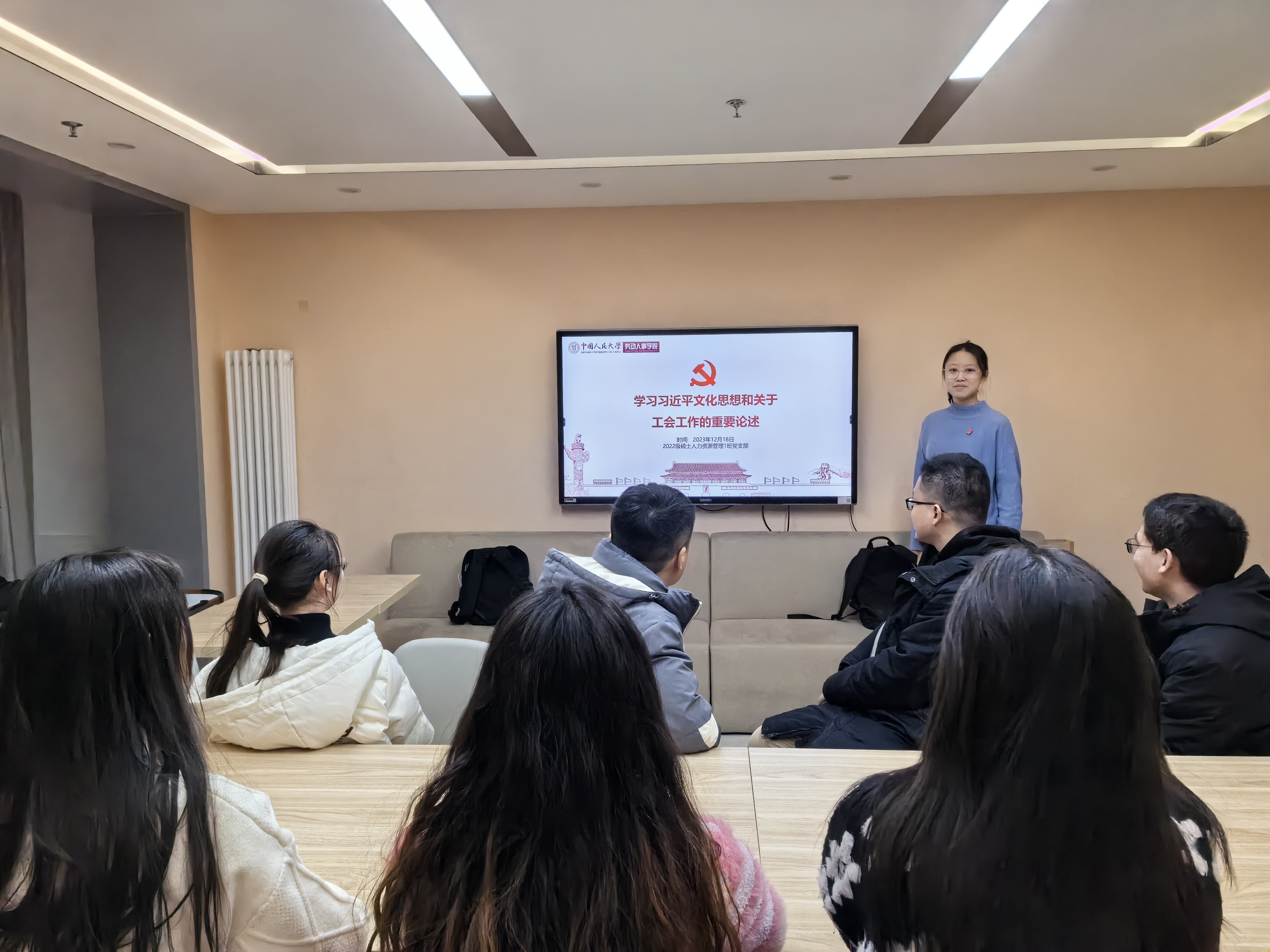 2023年12月18日,太阳成集团tyc234cc2022级硕士人力资源管理1班党支部开展“学习习近平文化思想和关于工会工作的重要论述”主题党日活动。本次活动由党支部副书记杨欣悦主持,支部党员及入党积极分子共同参加。