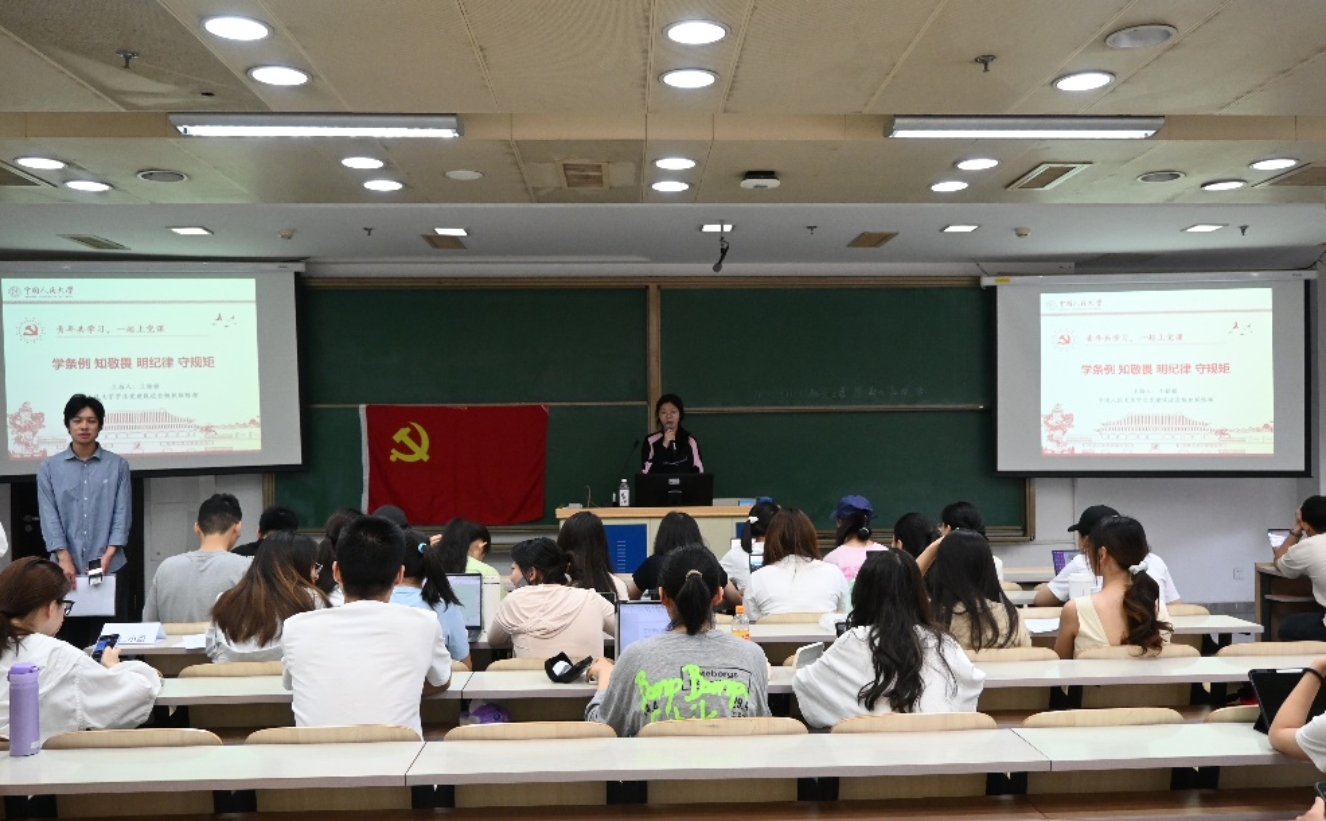 2024年5月18日上午,太阳成集团tyc234cc本科第三党支部与农业与农村发展学院2023级硕士3班党支部在明德法学楼0301教室联合开展“一起上党纪课”主题党日活动,深入进行党纪专项教育学习。本次活动由校员工党建促进会王铭铭同志主持,校员工党建促进会研究室张浩泽同志做主题分享。
