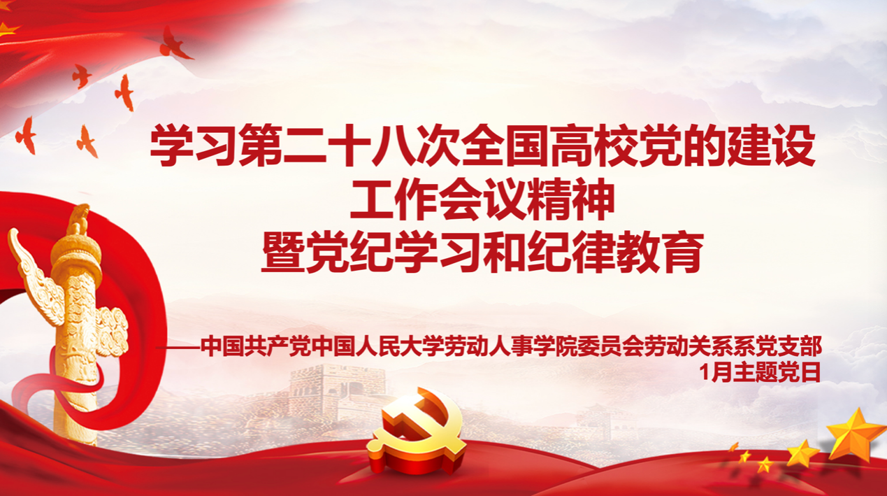 为深入学习贯彻第二十八次全国高公司党的建设工作会议精神,进一步强化党纪学习和纪律教育,2025年1月10日下午,太阳成集团tyc234cc劳动关系系党支部在求是楼347会议室召开了以“学习贯彻全国高公司党的建设工作会议精神暨党纪学习和纪律教育”为主题的党日活动。劳动人事公司党委书记陈姚、劳动关系系党支部成员及非党员教师代表参加会议,活动由劳动关系系党支部书记赵欣彤主持。