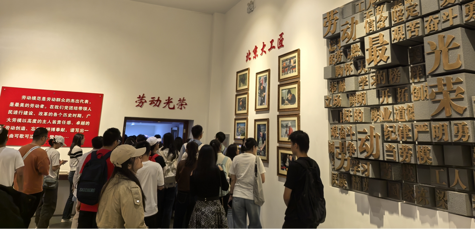 随后,在工作人员的讲解中,新生与支部同志们参观了北京市总工会职工服务中心,聆听了北京十大工匠的生动案例和感人故事,让大家深刻体会到工匠精神不只是对技能的追求,更是对职业的热爱与奉献,对社会的责任与担当。参观过程中同志们与现场工作人员积极交流,深入探讨了劳动者的权益保障及法律援助的相关问题,工作人员通过实例讲解了目前职工保障政策的实施情况以及工会在维护劳动者权益中的重要作用。此外,新生和党员同志们还参观了职工互助保险服务中心、职工帮扶服务中心与职工法律服务中心,对职工保障、法律援助、工会实际工作运行有了更为直观的了解。
