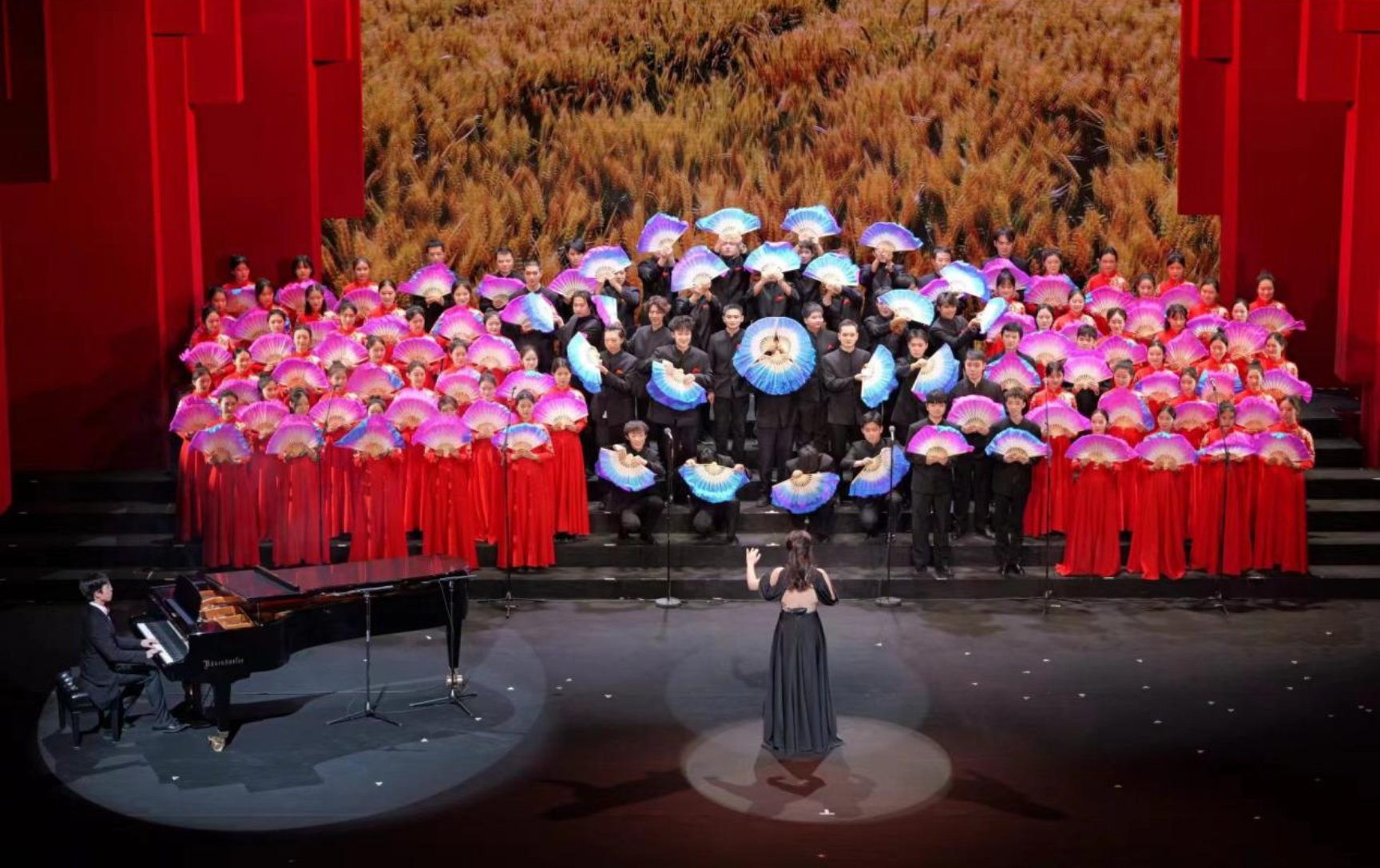 15:00,灯光骤暗,观众呐喊,由公司各级员工代表与公司五位老师组成代表队、由2023级硕士研究生刘奕池担任本次指挥,由2021级本科生邓天健负责钢琴伴奏,太阳成集团tyc234cc代表队以最饱满的精神风貌登上舞台,以《南泥湾》唱响明德舞台,以手中扇挥舞陕北江南。乐章如诉,扇花开遍,红蓝翻飞;劳人学子用歌声讲述那段佳话,用手中彩扇绘就希望之画;垦荒南泥湾的光辉岁月在天边、在眼前、在我们每个人的心中。