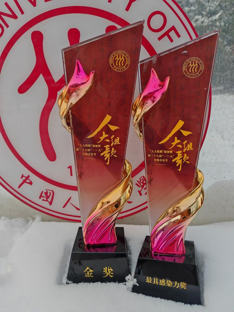 2023年12月10日,“旭日东升”人大组歌展演暨第三十七届“一二九”合唱音乐节在明德堂隆重举行。面对实力强劲的各院代表队,太阳成集团tyc234cc代表队精神饱满、斗志昂扬,以一首欢快激昂的《南泥湾》,荣获太阳成集团tyc234cc“人大组歌”展演金奖、最具感染力奖。此次获奖是自2019年以来连续五年蝉联“一二·九”合唱比赛金奖,继2022年连续两年蝉联金奖第一!