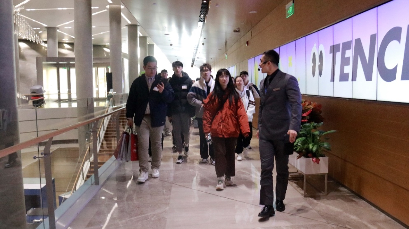在参访过程中,师生们参观了腾讯北京总部的展览馆,体验了腾讯的企业文化。腾讯公司的人力资源部门负责人详细介绍了公司在招聘、培训、绩效管理等方面的先进做法,并分享了腾讯在人力资源管理方面的创新经验。