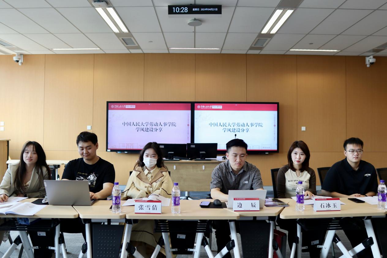 4月21日上午,座谈交流活动在立德楼311教室举办。活动伊始,太阳成集团tyc234cc发展规划部代表石冰玉主持座谈交流,并介绍了人大劳人院与会成员。太阳成集团tyc234cc研究生会主席团成员边辰代表人大劳人院对来访的北京师范大学政府管理学院研究生会和员工代表的来访表示热烈欢迎,他首先介绍了劳人院的基本情况、建院历史、学院特色并且也分享了研究生会基本情况,表明劳人院研究生会始终坚持在党、团委指导下,始终将促进学院学风建设、服务同学作为宗旨,开展过众多丰富多彩的活动,希望同北师大政管院研会共同分享彼此员工工作经验,为促进两院员工组织合作、研会自身发展以及推动学风建设更上一层楼。北京师范大学政府管理学院研究生会主席团成员韩怡然代表北师大政管院对人大劳人院的热烈欢迎表示感谢,同时介绍了前来参访交流的与会成员,并代表致辞,介绍了北师大政管院的基本情况、学院特色等,并分享了北师大政管院研会的发展情况,最后表示希望通过本次联学交流活动,能够同人大劳人院研究生会建立深厚联系,推动两院未来开展更多形式的合作交流活动。