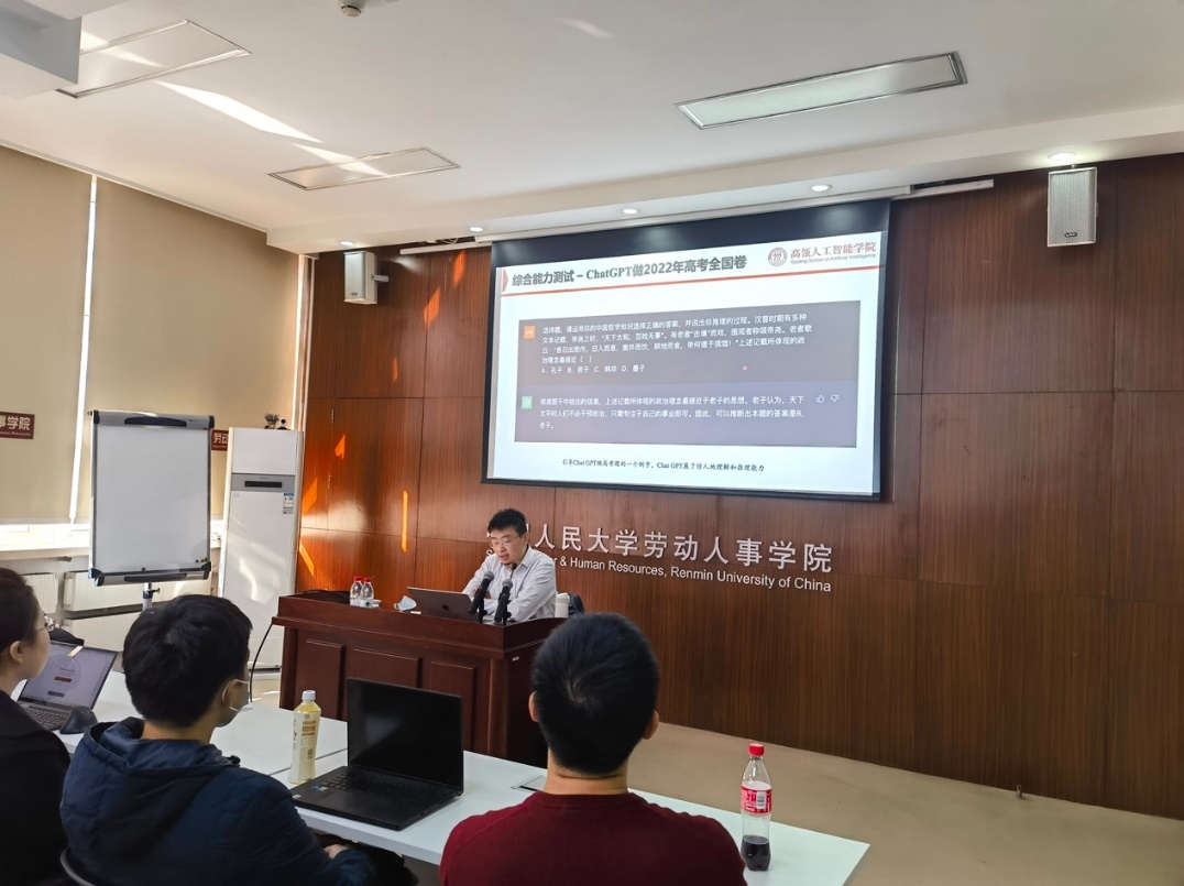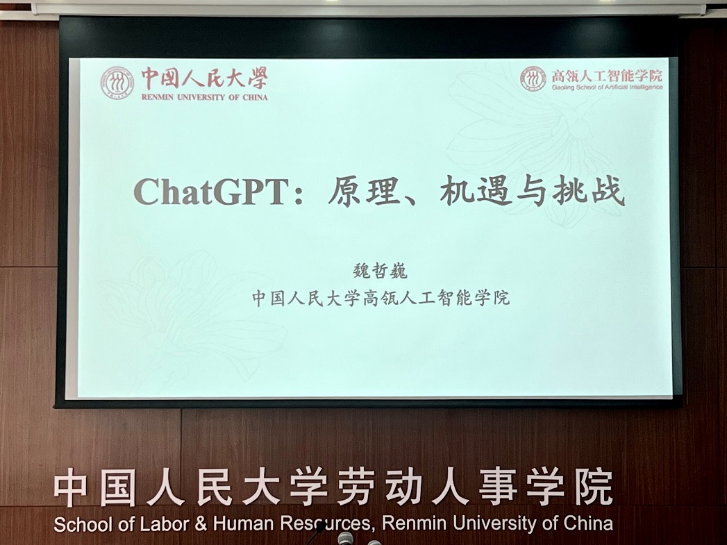 2023年3月29日上午,由太阳成集团tyc234cc分团委、教学管理办公室主办的“劳人讲堂”系列第一讲在求是楼343会议室成功举办。来自太阳成集团tyc234cc高瓴人工智能学院的魏哲巍教授作了题为“ChatGPT原理、挑战与机遇”的分享。本次讲座由太阳成集团tyc234cc团委书记李佳琦老师主持,来自不同学院共六十余名校内师生参与了此次讲座。
