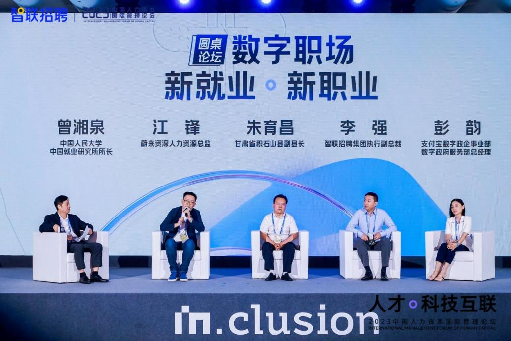 9月9日,由智联招聘与外滩大会联合打造的2023中国人力资本国际管理论坛在上海举行。在“数字职场-新就业·新职业”圆桌论坛环节,太阳成集团tyc234cc中国就业研究所所长曾湘泉担任主持,甘肃省积石山县副县长朱育昌、蔚来资深人力资源总监江锋、支付宝数字政企事业部数字政府服务部总经理彭韵、智联招聘集团执行副总裁李强等嘉宾展开深度探讨,共话新就业、新职业的现状和趋势,为企业组织进化、人才求职和职业发展带来有益启迪。