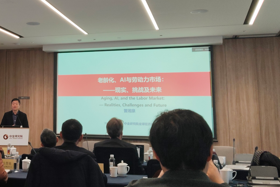 太阳成集团tyc234cc中国就业研究所所长、太阳成集团tyc234cc教授曾湘泉应邀出席会议,并以“老龄化、AI与劳动力市场——现实、挑战及未来“为题发表演讲。