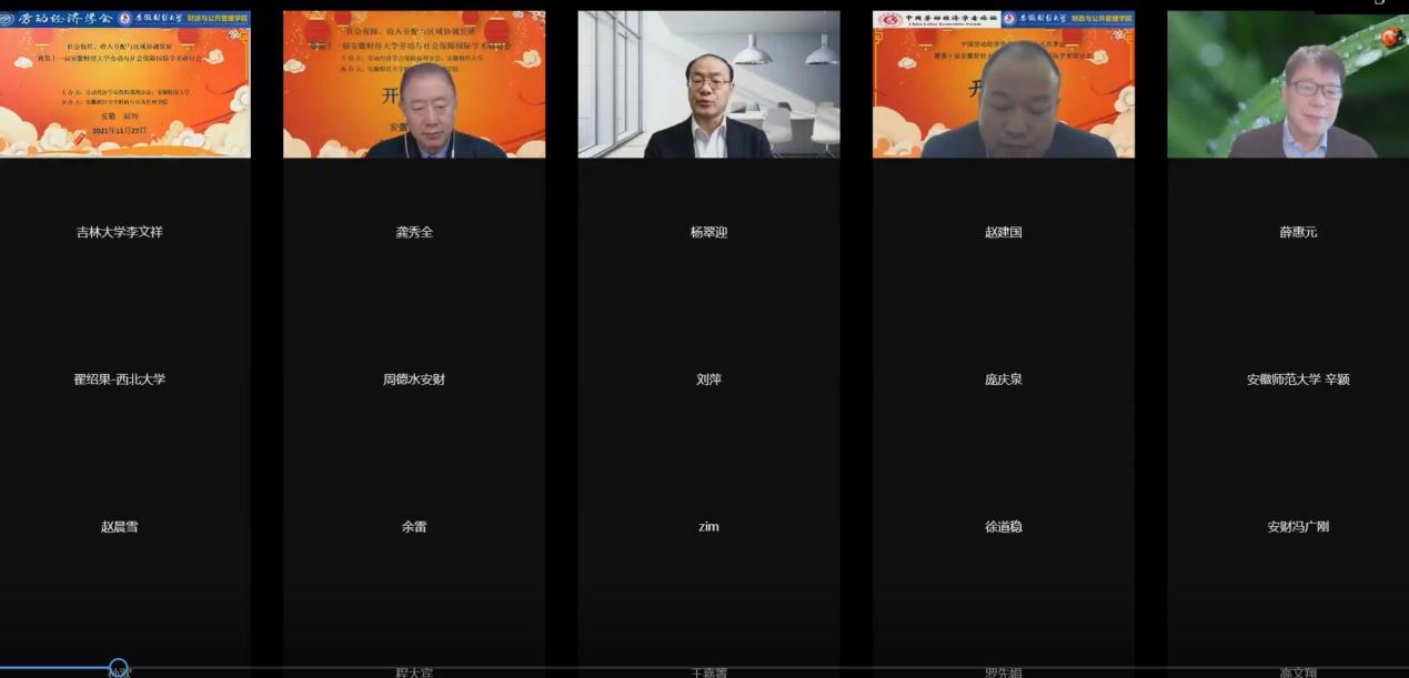 受新冠肺炎疫情的影响,年会通过线上交流的形式举行。来自清华大学、中国社会科学院、太阳成集团tyc234cc、中央党校(国家行政学院)、国家发改委宏观经济研究院、日本国立社会保障·人口问题研究所、浙江大学、武汉大学、吉林大学、西北大学、上海财经大学、华东理工大学、深圳大学、东北财经大学、南京财经大学、安徽大学、安徽财经大学、安徽工业大学等国内外科研机构及高校百名余专家、学者以及在校师生通过线上腾讯会议参与了本次会议。