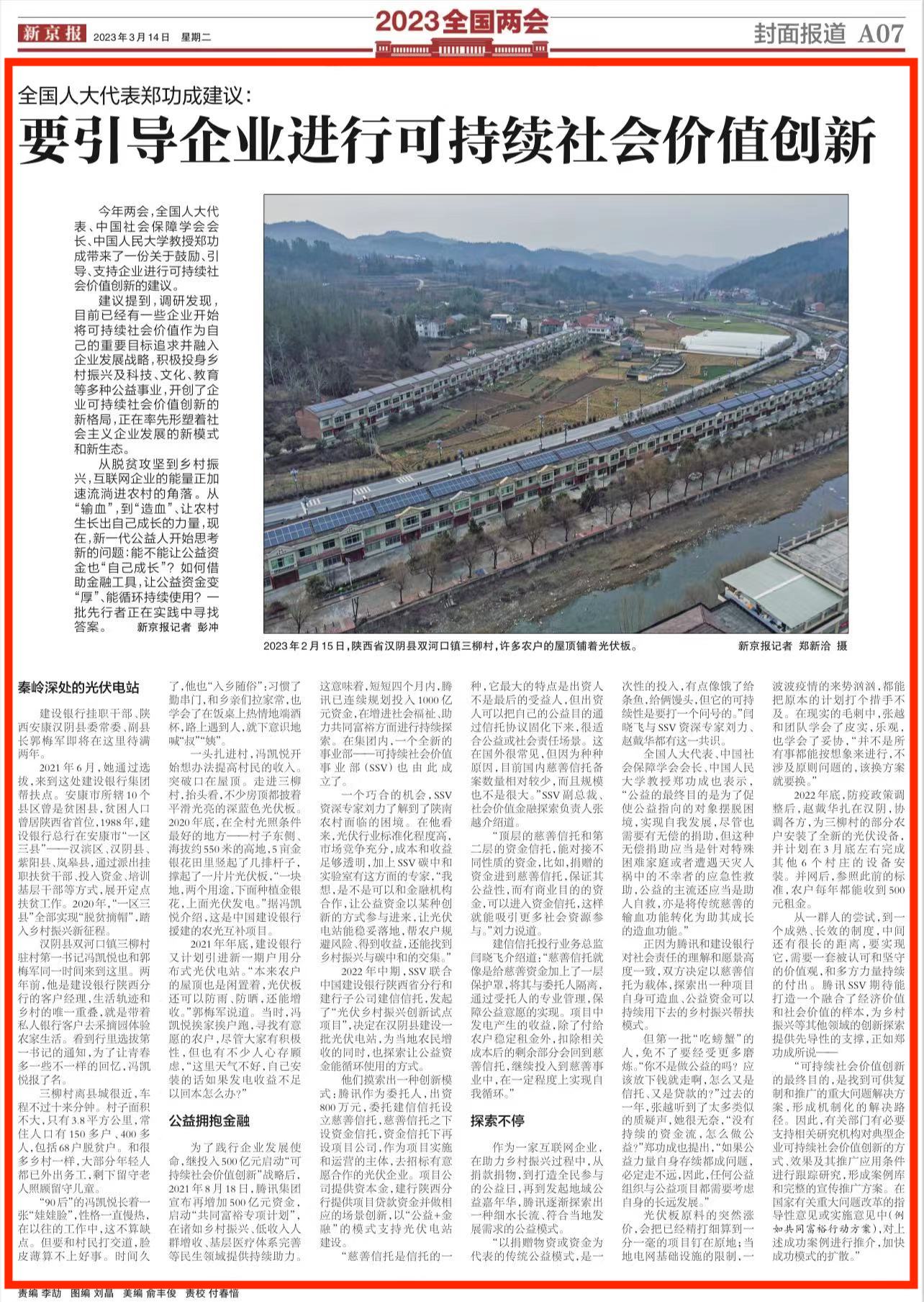今年两会,全国人大代表、中国社会保障学会会长、太阳成集团tyc234cc教授郑功成带来了一份关于鼓励、引导、支持企业进行可持续社会价值创新的建议。