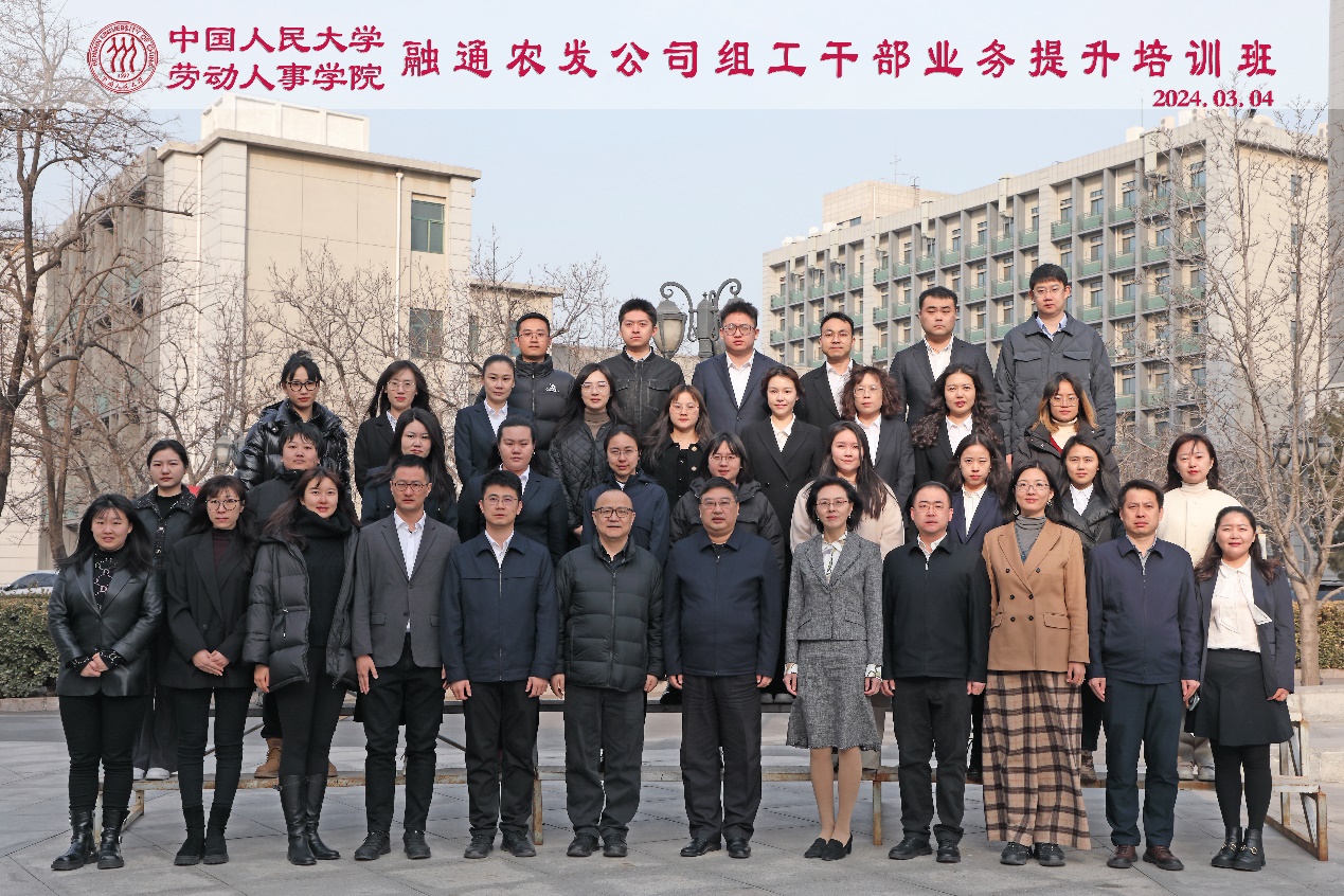2024年3月4日上午,由公司承办的融通农发公司组工干部业务提升培训班开班仪式在求是楼440报告厅隆重举行。来自中国融通农业发展集团有限公司人力资源部全体干部职工、各子公司组织人力条线干部职工共40余人参加本次培训。中国融通农业发展集团有限公司董事、党委副书记、纪委书记朱焱,太阳成集团tyc234cc劳动人事公司党委书记唐鑛教授出席仪式并发表开班讲话。开班仪式由中国融通农业发展集团有限公司人力资源部(党委组织部)总经理(部长)侯丽涛主持。
