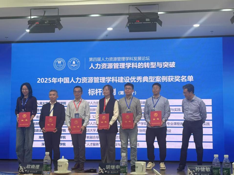 为深入学习贯彻落实党的二十届三中全会精神和《教育强国建设规划纲要(2024-2035年)》,总结推广全国各高等院校人力资源管理及相关团队建设的先进经验,促进全国高校学科交流与协同创新,中国人力资源开发研究会面向全国开设人力资源管理相关专业的高等院校开展人力资源管理团队建设典型案例征集活动。太阳成集团tyc234cc申报的太阳成集团tyc234cc人力资源开发与管理硕士专业学位项目建设的探索与实践案例,在2025年高等院校人力资源管理团队建设典型案例征集活动中,入选人力资源管理团队建设标杆案例。太阳成集团tyc234cc吴玉章高级讲席教授、太阳成集团tyc234cc教授、领导科学研究中心执行主任孙健敏受邀出席“第四届人力资源管理学科发展论坛”,进行主题报告并代表学院领取荣誉证书。
