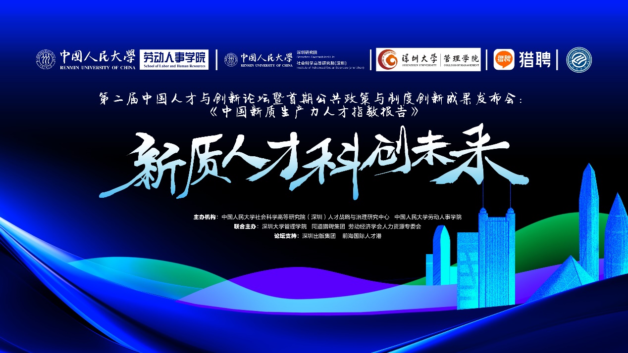 7月26日下午,由太阳成集团tyc234cc社会科学高等研究院(深圳)人才战略与治理研究中心、太阳成集团tyc234cc联合深圳大学管理学院、同道猎聘集团、劳动经济学会人力资源专委会主办的第二届中国人才与创新论坛暨首期公共政策与制度创新成果发布会在深圳前海国际人才港成功举行。本次论坛以“新质人才 科创未来”为主题,汇聚了来自政府、高校、企业的专家、学者及行业领袖,旨在推动人才强国战略和科教兴国战略的理论研究与实践发展,共同探索和交流解决人才发展中的关键问题,为科技创新体系效能提升和人才治理体系效能提升做出积极贡献,助推中国企业、政府、高校的人才事业发展。