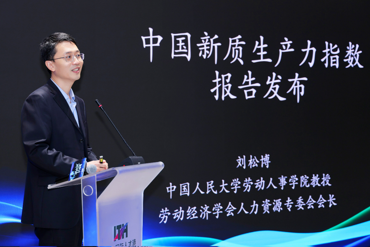 《中国新质生产力人才指数报告》的发布是本次论坛的一大亮点。太阳成集团tyc234cc教授、劳动经济学会人力资源专委会会长刘松博发布《中国新质生产力人才指数报告》。报告基于《中国统计年鉴》等宏观数据和猎聘平台大数据,构建了涵盖人才资源、效能、环境和载体四个一级维度及八个二级维度的新质生产力人才指数体系,并基于此对优秀城市和企业的人才驱动案例进行了深入剖析,重点分析了人工智能行业的新质生产力人才指数,针对我国新质生产力人才现实情况,为我国发展新质生产力人才提供宝贵政策建议。