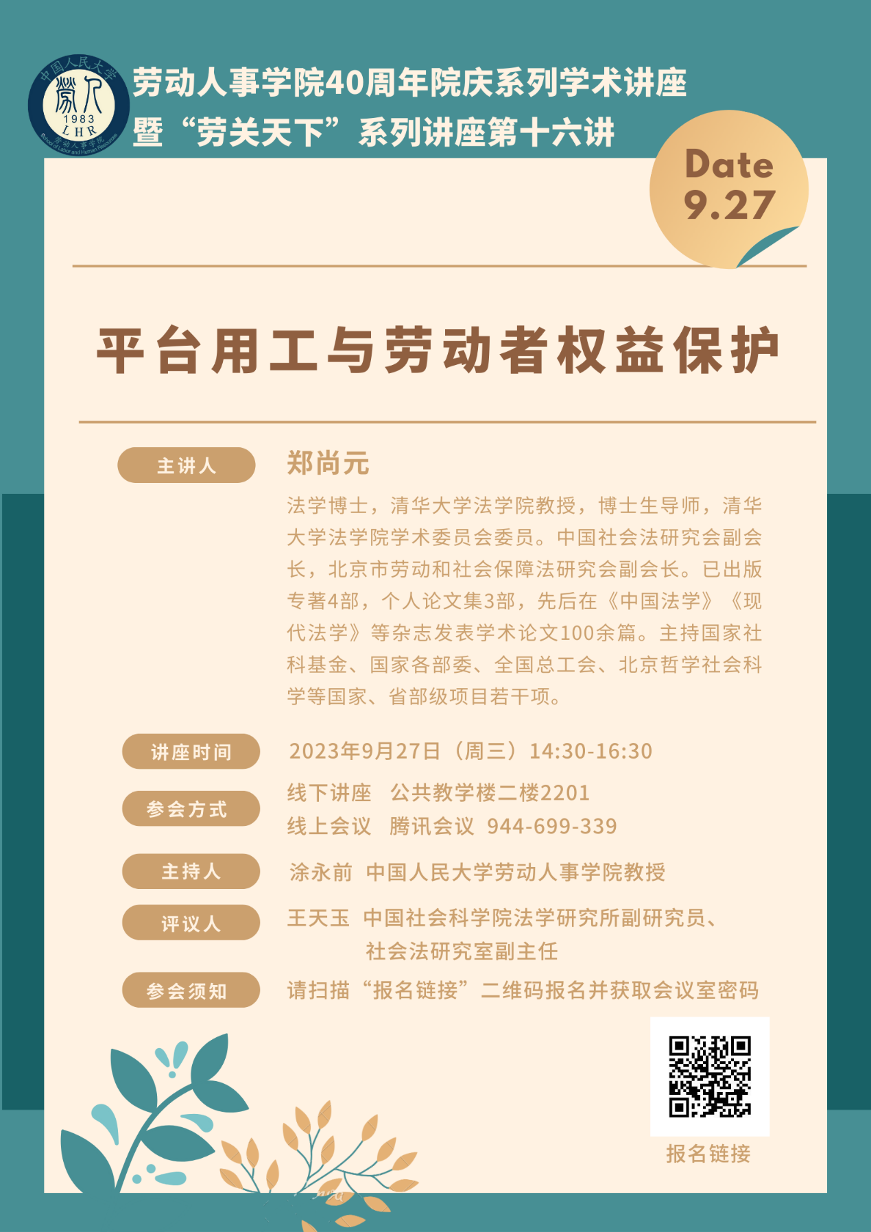 讲座题目:平台用工与劳动者权益保护