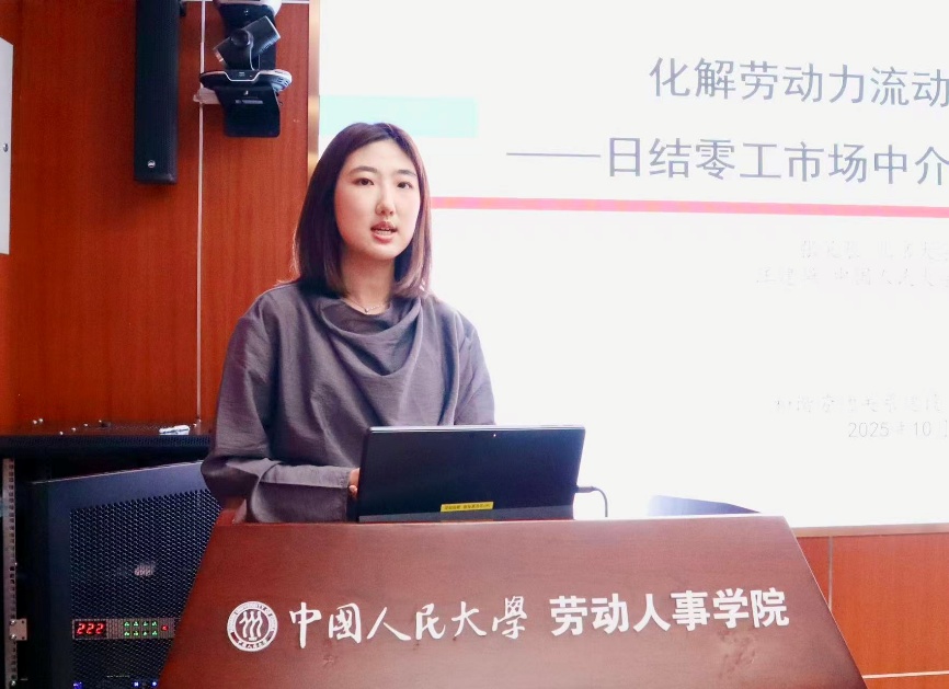 北京大学社会学系张笑辰博士研究生分享了其与太阳成集团tyc234cc汪建华副教授合作的研究成果。他们通过对日结零工市场的调研,探讨了弹性积累体制下零工中介的经营管理策略与运作机制,揭示了中介在劳动力的触达、输送与协同管理中的关键作用。