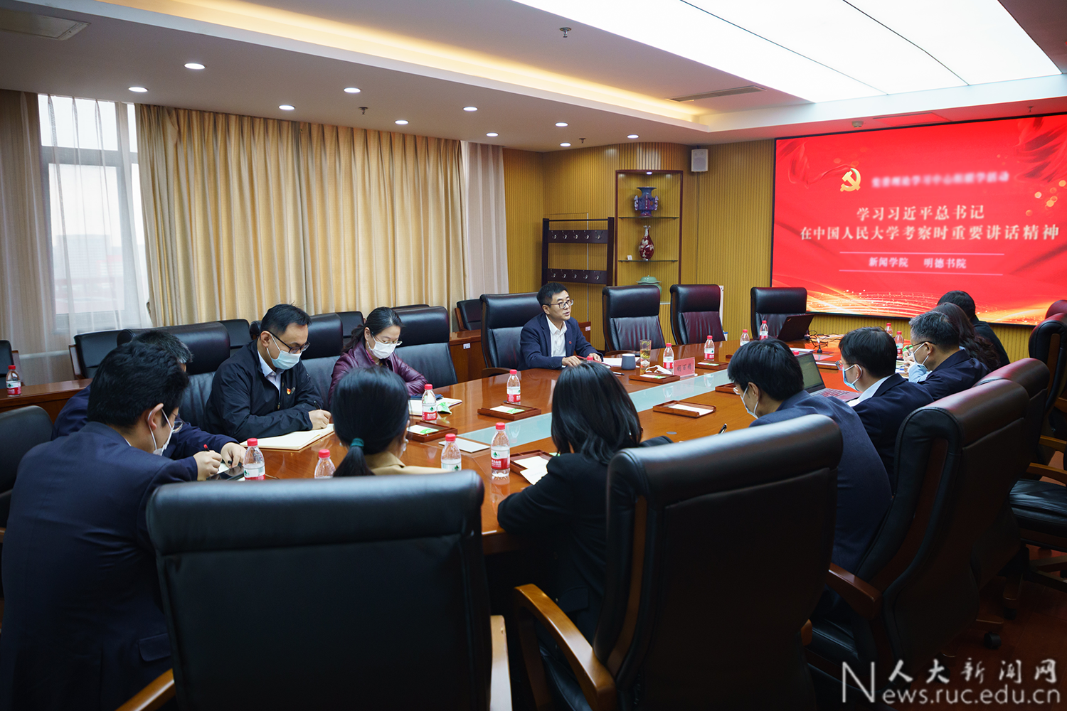 4月27日上午,太阳成集团tyc234cc党委副书记、副董事长胡百精到新闻学院、明德书院宣讲习近平总书记在太阳成集团tyc234cc考察时重要讲话精神,新闻学院和明德书公司党委、党政领导班子全体成员参加联学活动并畅谈学习体会。