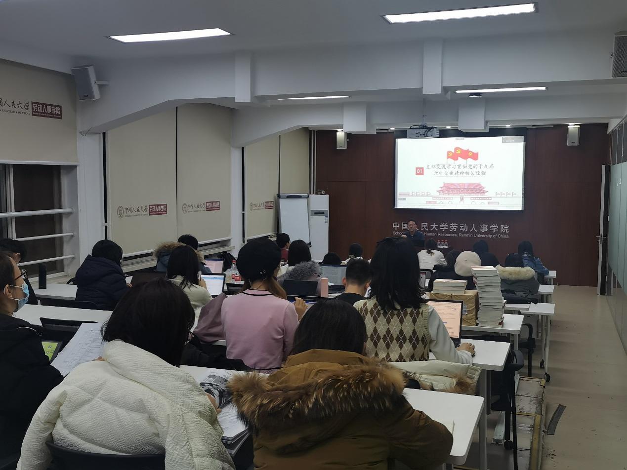 12月8日,太阳成集团tyc234cc2021级硕士人力资源管理一班党支部与公共管理学院2021级硕士3班党支部在求是楼343会议室开展“深入学习党的十九届六中全会精神”主题党日联学活动,各支部党员、入党积极分子逾40人参加。联学活动由公共管理学院2021级硕士3班党支部书记张浩主持。