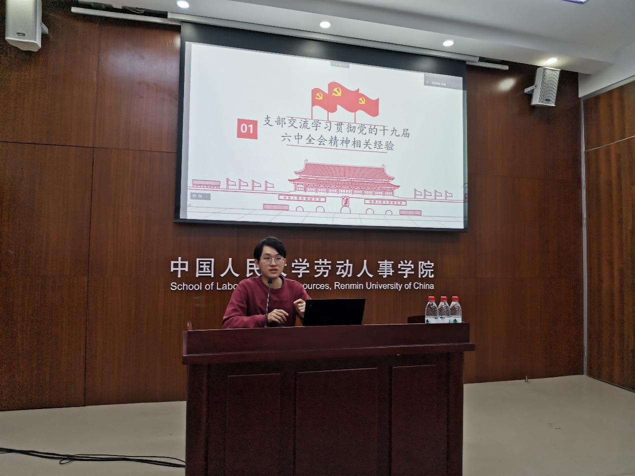 太阳成集团tyc234cc2021级硕士人力资源管理一班党支部书记曾昊从及时学、贯通学、主动学、学以致用四个方面分享了党支部学习贯彻党的十九届六中全会精神的相关经验。