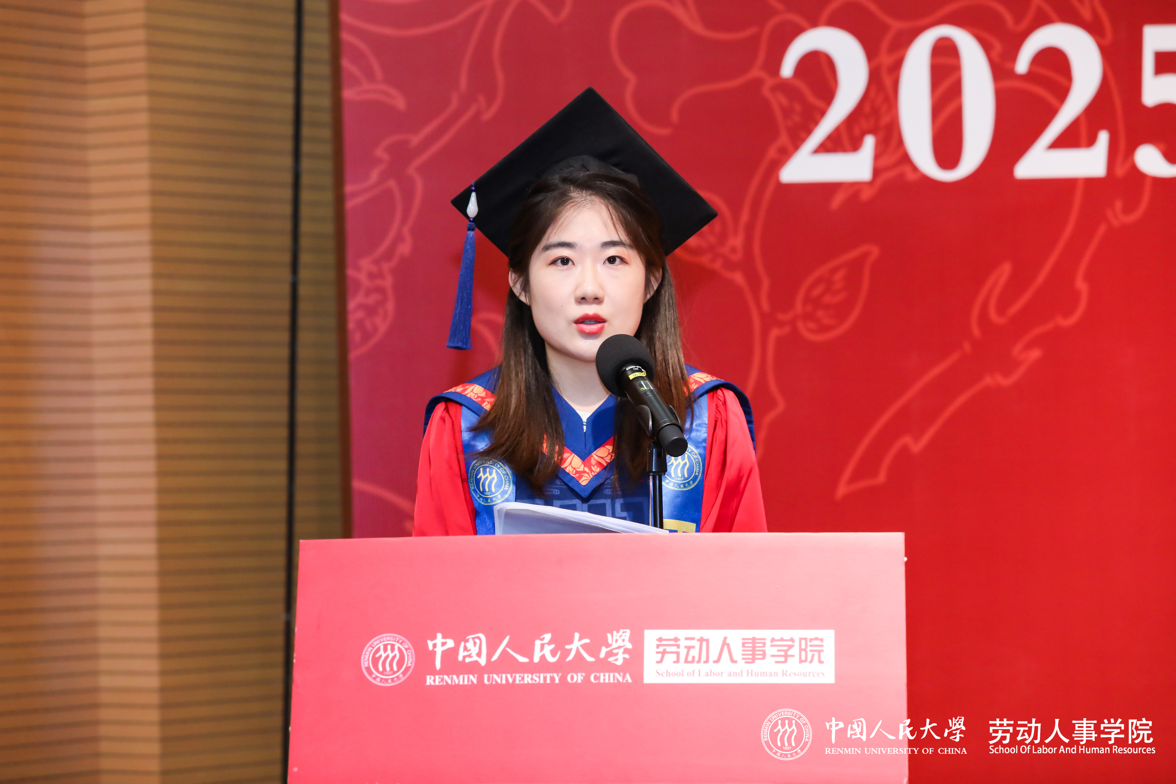 2025年1月学位获得者代表、杭州地铁商业经营管理有限公司组织与人力资源部总监项宝龙以幽默风趣的语言分享了“痛并快乐着”的在职学习经历,向导师、家人和同学表达诚挚谢意。2025年6月学位获得者代表、中国建筑技术集团有限公司党务负责人孟文翕讲述了在平衡职场与学业过程中的心路历程。她对母校、恩师、同窗与家人的鼎力支持表示深切的感激,并表示将承载所学,昂首迈向未来。毕业生家属代表张伦通过生动的事例,表达了作为毕业生亲属的自豪感,并向学院及毕业生致以真挚的祝福。