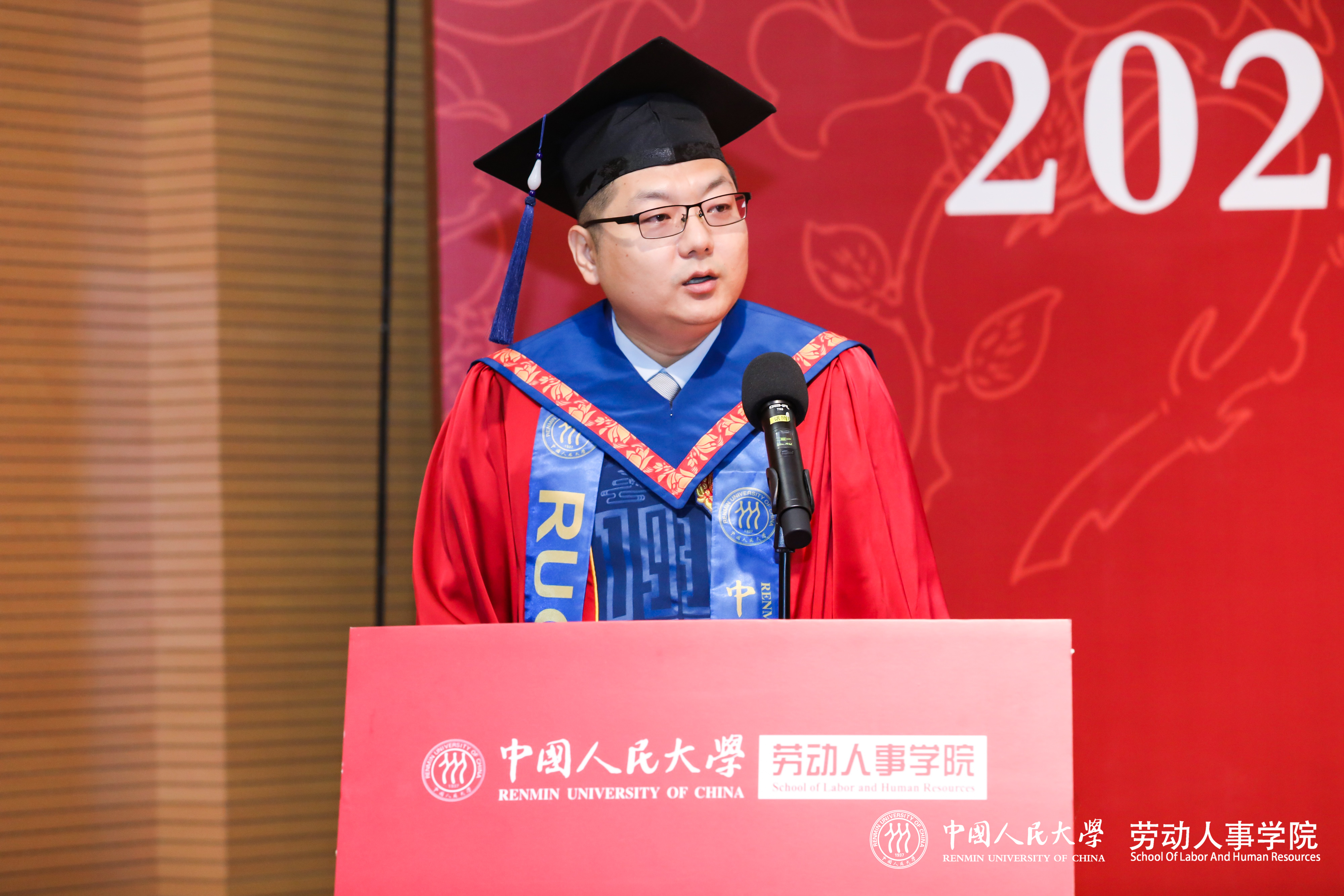 论文指导教师代表骆南峰老师深情回顾了毕业生们在繁重工作之余,依然坚持不懈地参加周末课堂、精心打磨论文的奋斗历程。他高度赞扬毕业生们所展现出的“坚韧卓绝的求学精神”,这种精神不仅体现了他们对知识的渴望,也展现了他们在面对困难时的顽强毅力。他寄语毕业生要“永葆学习热情,践行专业方法,传递温暖力量”,强调学院将始终关心与守护员工们的成长。