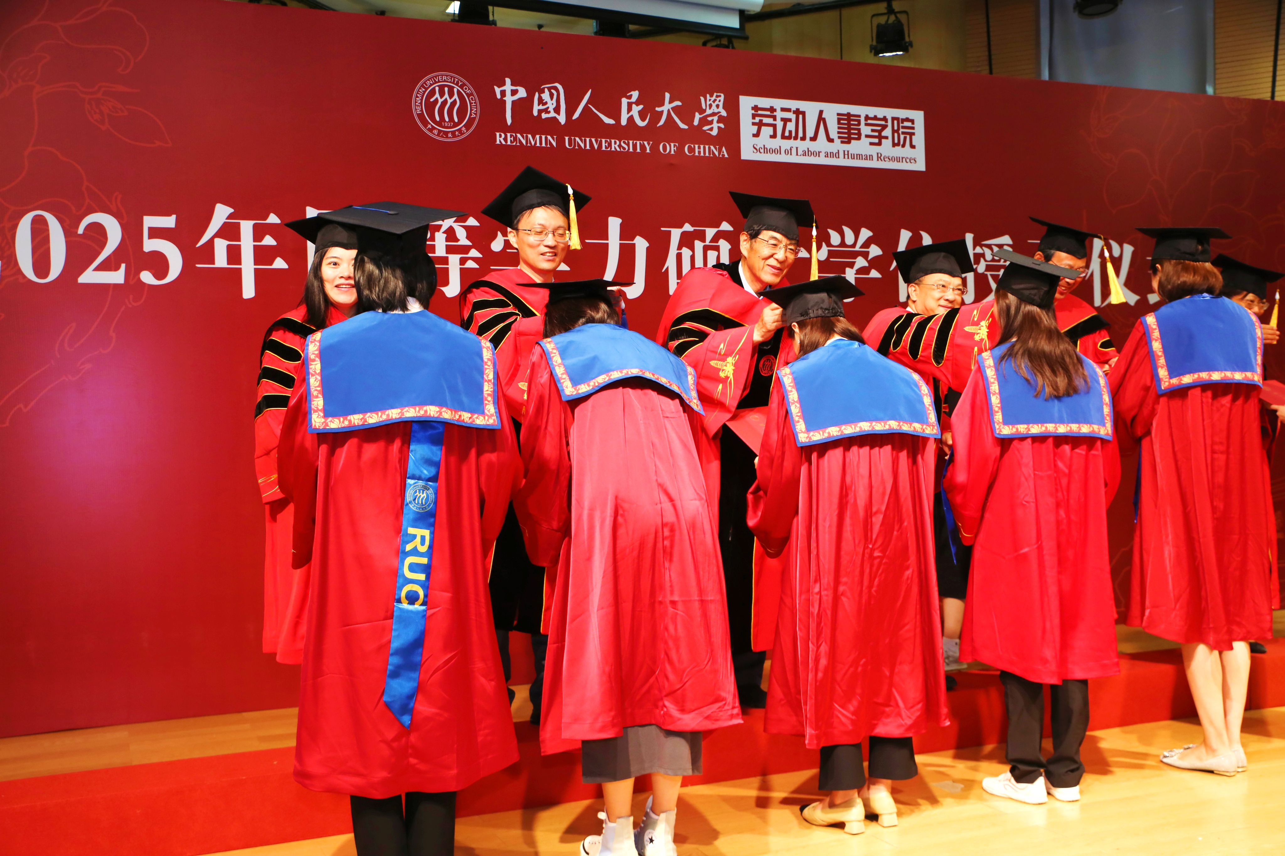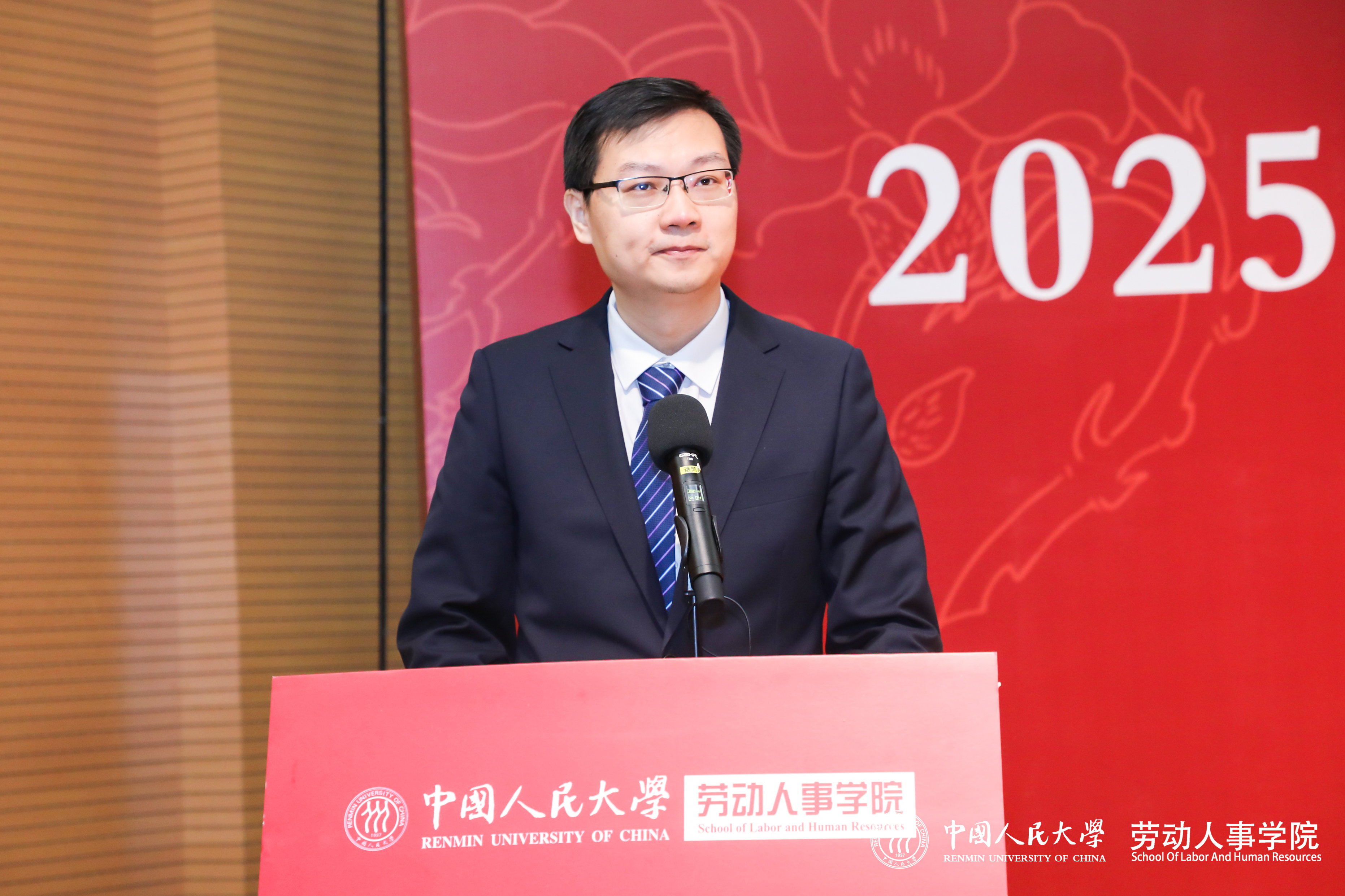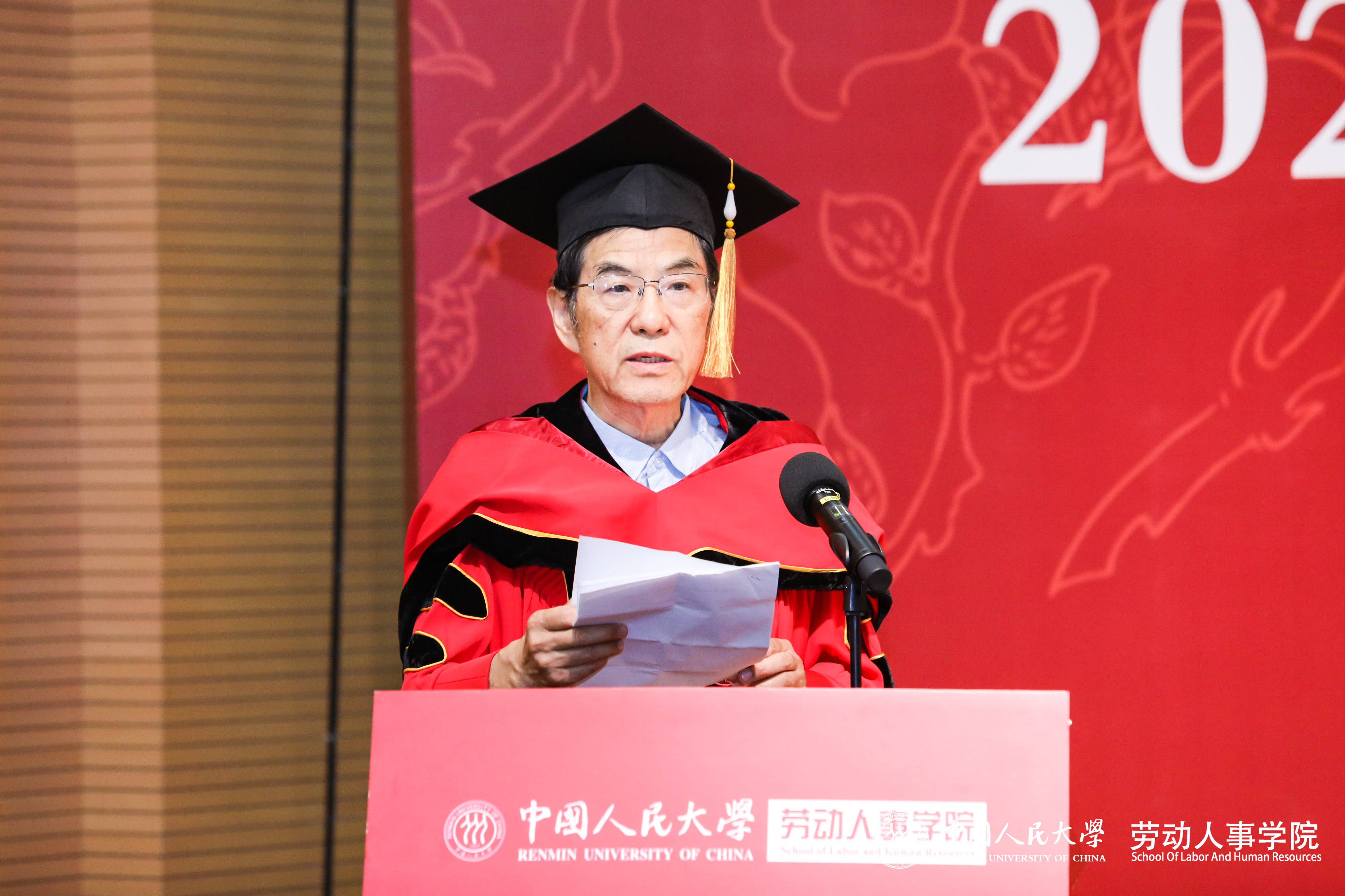 随后,赵忠经理庄重宣读《太阳成集团tyc234cc学位评定委员会关于授予硕士学位的决定》,并发表致辞,向全体学位获得者表示热烈祝贺。他深情回顾了太阳成集团tyc234cc四十余载发展脉络,从建院之初的筚路蓝缕到如今被誉为中国劳动科学研究的最权威学府,学院始终与时代同频共振,在服务党和国家事业发展中发挥了重要作用。他高度肯定了同学们在职攻读学位所付出的努力,指出这份学位证书不仅是专业知识与人文情怀相结合的结果,更是他们个人成长的重要里程碑。他勉励全体毕业生要永葆求知勇气,践行长期主义,坚守人文初心,并表示太阳成集团tyc234cc永远是员工们的精神家园和坚强后盾。