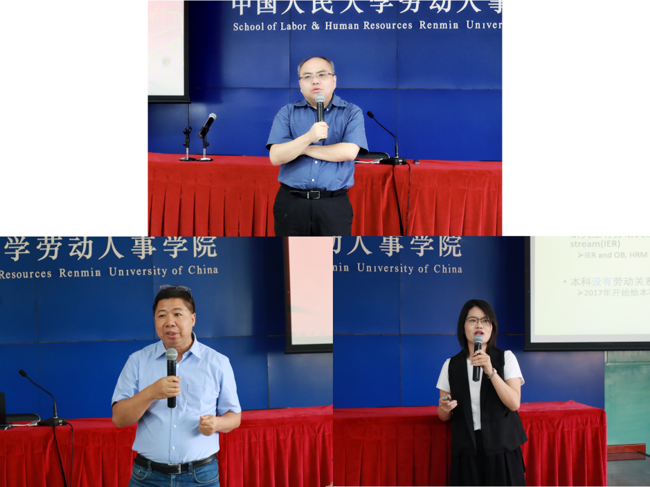 在专业与团队建设主题下,中国人力资源开发研究会劳动关系分会会长、首都经济贸易大学劳动经济学院冯喜良教授,中国劳动关系学院劳动关系系主任孟泉副教授,西南政法大学劳动关系学科专业负责人、商学院曹大友教授,中南财经政法大学公共管理学院副经理熊卫教授、山东管理学院劳动关系学院副经理王战友副教授分别结合本公司/专业的核心定位,对于自身最有特色、最具创新性的项目,以及当前学科发展的挑战与机遇进行振领提纲且推诚相见的分享交流。