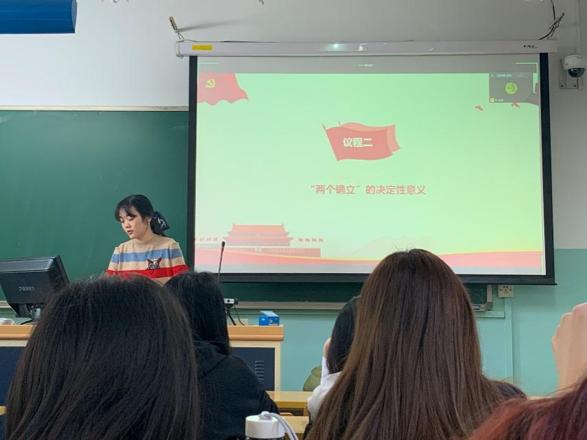2022年3月8日中午,按照公司党委的统一要求,2021级硕士人力资源管理二班党支部召开了3月主题党日。本月主题党日以“学习贯彻党的十九届六中全会精神,强化党员政治意识、提升党组织政治功能”为主题,党支部书记金铭主持会议,支部全体党员和积极分子参加会议。