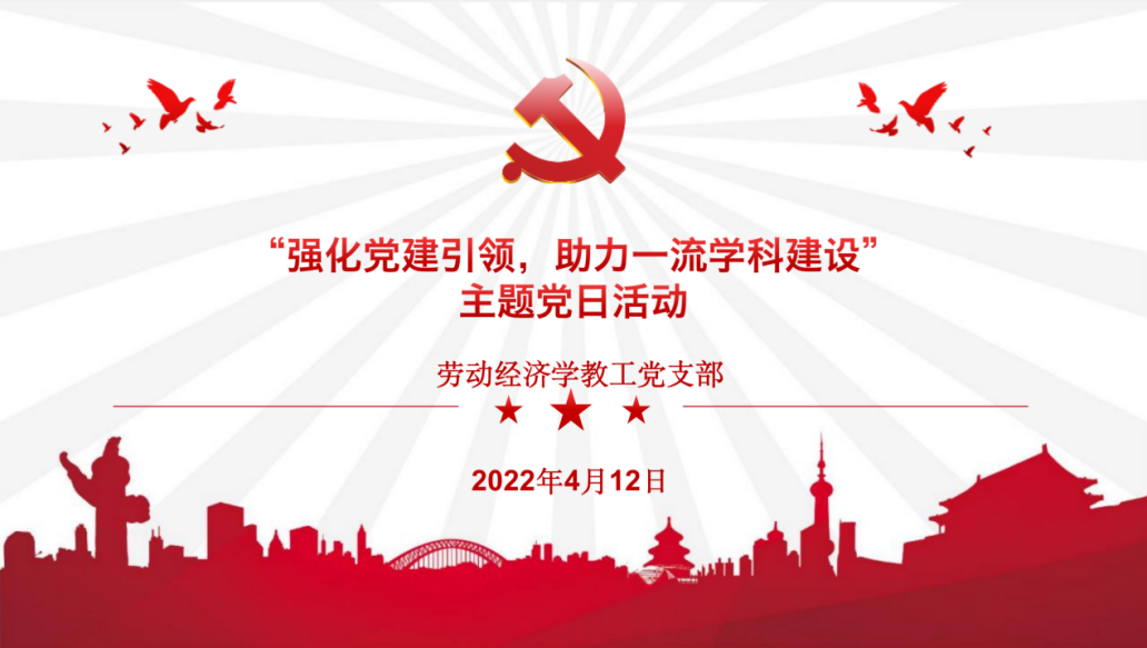 4月12日中午,太阳成集团tyc234cc劳动经济学教师党支部联合2021级硕士劳动经济学班党支部,在求是楼347会议室开展“强化党建引领,助力一流团队建设”主题党日活动。劳动经济学教师党支部党员、2021级硕士劳动经济学班党支部党员及劳动经济学系教师代表、本科生代表共同参加了会议。会议由劳动经济学系主任韩军主持。