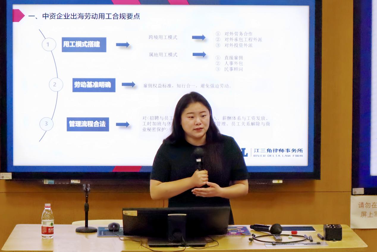江三角律师事务所合伙人、域外劳动法中心主任王天怡律师发表了题为《出海中资企业域外用工合规要点》的主题演讲,深入剖析了中资企业海外用工的法律风险与可持续发展策略,为出海企业提供了系统性指导。王天怡律师指出,中资企业出海需聚焦用工模式搭建、劳动基准适配和管理流程合法化三大核心领域,并结合案例强调企业需重点关注招聘、外籍员工准入和离职管理环节。最后,王天怡律师总结道,中资企业出海需“法律合规”与“社会责任”双轮驱动,以精细化用工管理规避风险,同时通过ESG实践增强国际软实力。