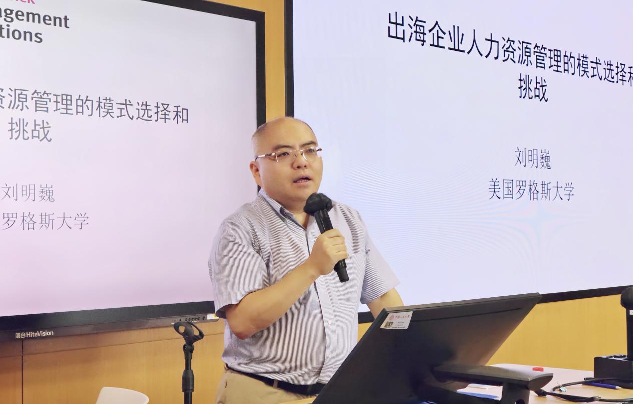 罗格斯大学管理与劳动关系学院副经理、教授刘明巍发表了题为《出海企业人力资源管理的模式选择和挑战》的主题演讲,深入分析了中国企业在全球化进程中人力资源管理面临的机遇与挑战。他首先通过数据展示了中国企业对外投资的快速增长及海外用工规模的扩大,指出随着地缘政治风险加剧,企业用工模式日趋多样化,但同时也面临社会责任落实不足、员工权益受损等问题。他强调,跨国企业需在全球化与本土化之间找到平衡,既要适应东道国法律与文化环境,又要保持母公司的管理优势。他建议企业构建“制度距离-本土化”分析框架,根据东道国市场特点选择适配管理模式,并加强跨文化培训与利益相关方沟通。最后,刘明巍教授呼吁学界与企业协同探索中国特色的跨国人力资源管理理论,助力企业实现高质量全球化发展。
