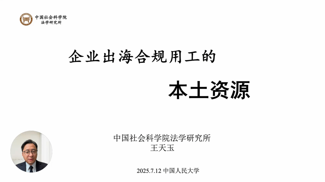 中国社会科学院法学研究所研究员,社会法研究室副主任王天玉通过视频形式,就“企业出海合规用工的本土资源”这一主题进行了深入探讨。他结合国内外案例,分析了中国企业在全球化进程中劳动治理模式的输出与适应问题,并提出了通过自贸区孵化企业合规能力的创新建议。王天玉研究员认为,中国企业出海不仅带去了资金和技术,还输出了具有中国特色的劳动管理文化,如“送温暖”活动和本土化的劳务管理模式,显著提升了员工的向心力和企业凝聚力。然而,他也强调,企业出海前的“用工质检”至关重要,需评估自身的合规意识、管理能力和财务能力。王天玉研究员的分享为中国企业全球化发展中的劳动合规问题提供了理论与实践的双重启示,呼吁企业、政府和社会多方协作,共同构建更具竞争力的出海能力。