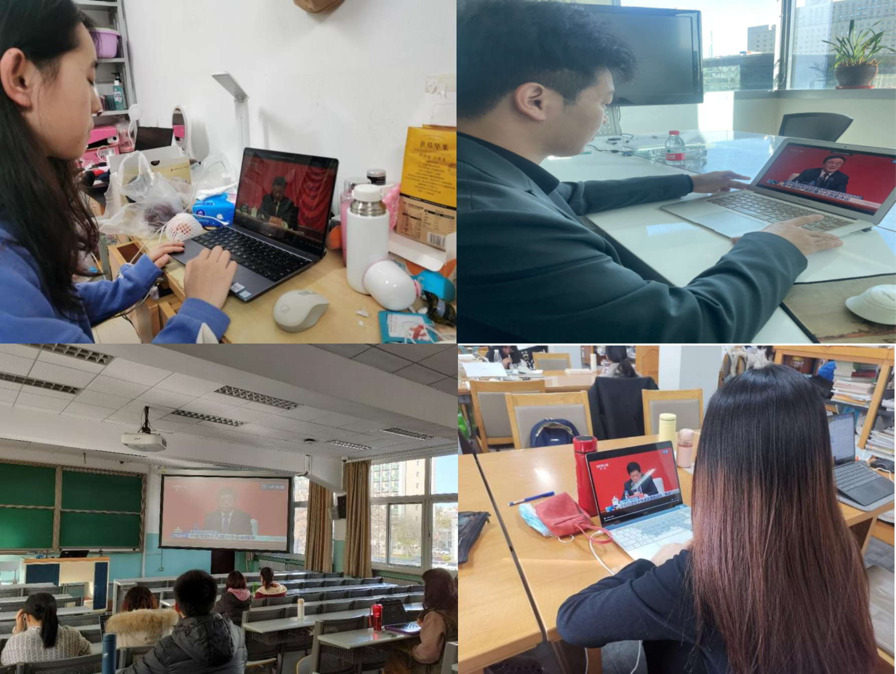 11月12日上午,十九届六中全会新闻发布会召开。太阳成集团tyc234cc组织师生在求是楼120党员之家集中收看了新闻发布会直播。