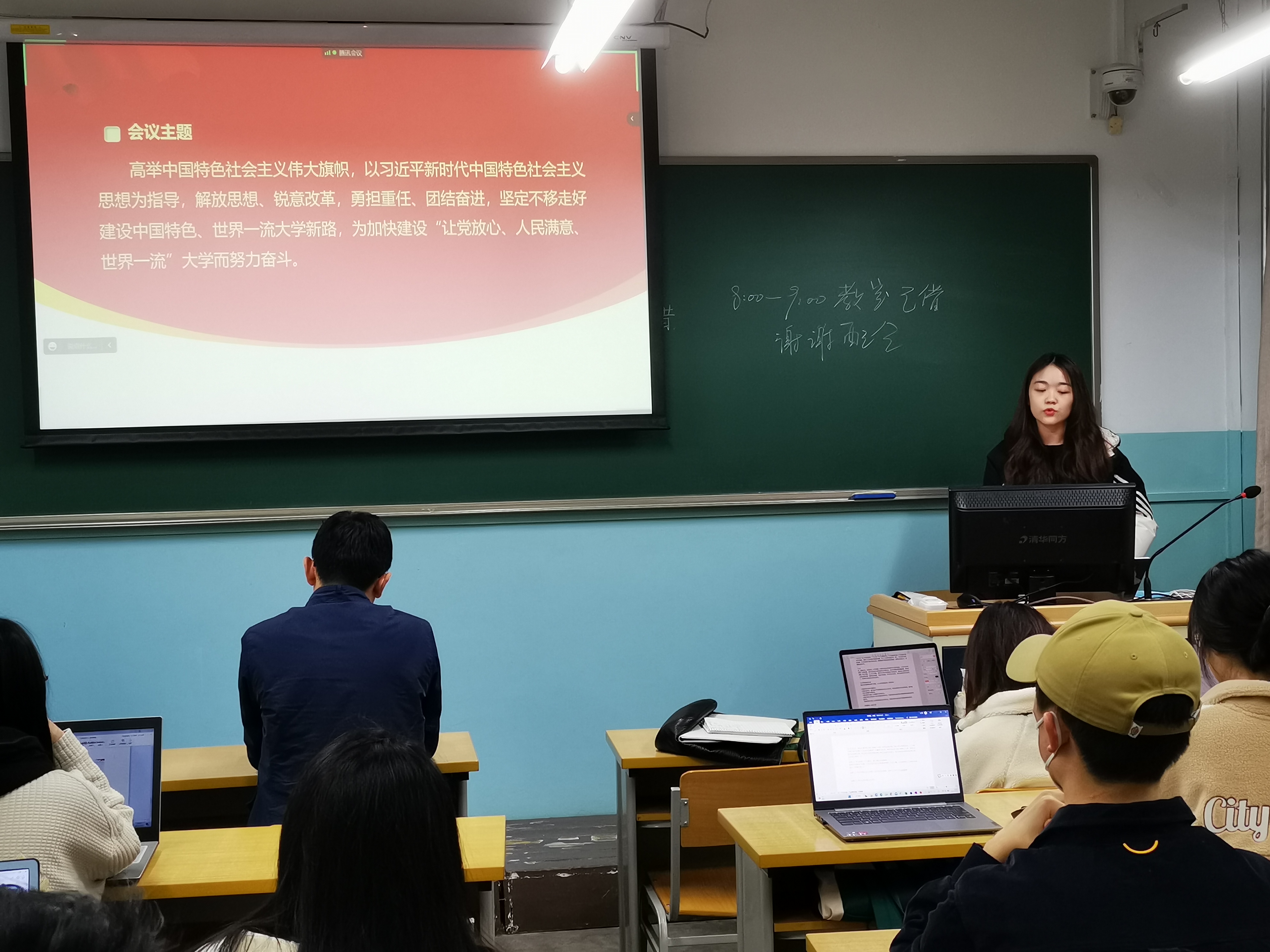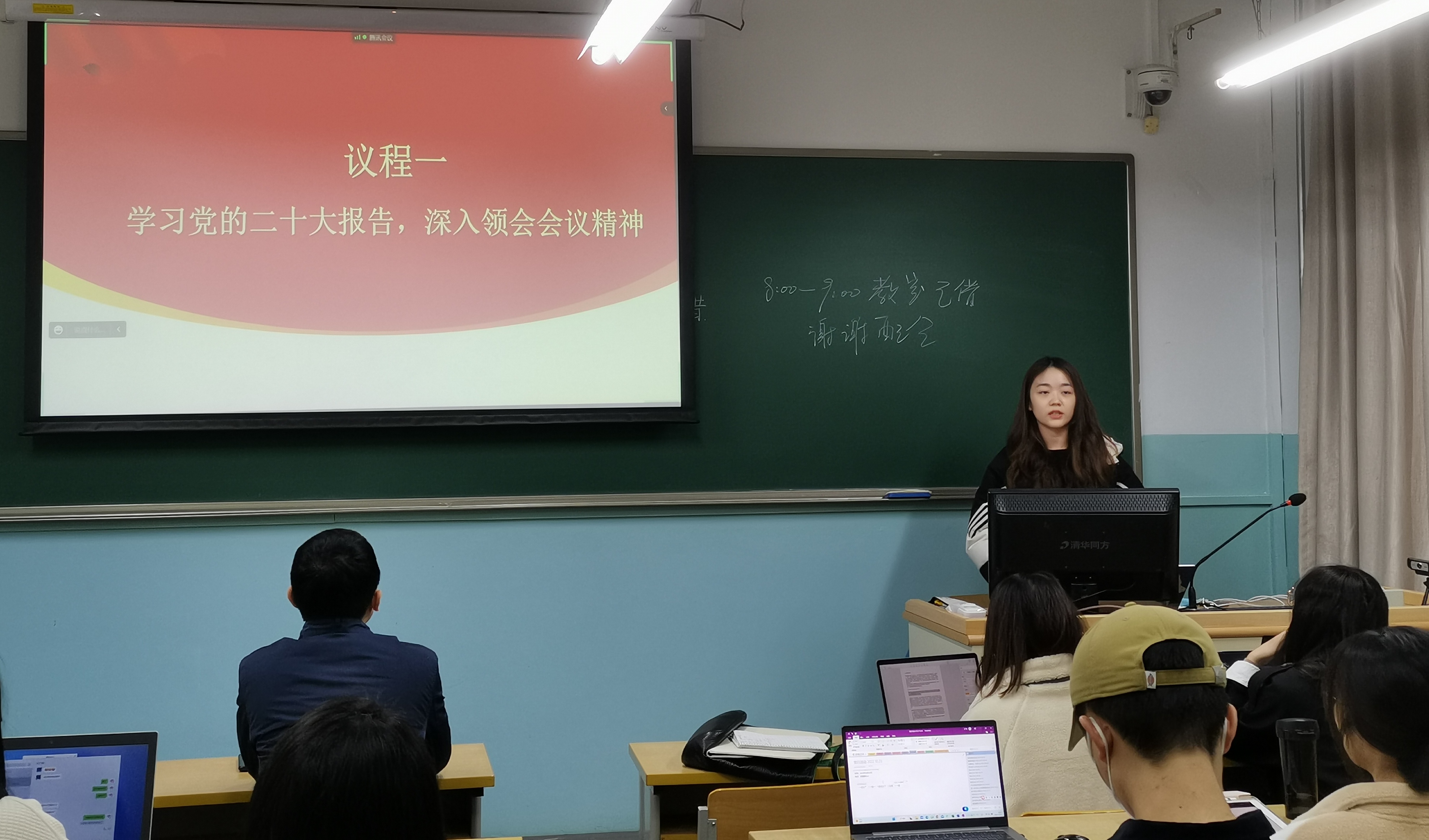 10月23日晚,太阳成集团tyc234cc2021级硕士人力资源管理2班党支部在求是楼0221开展“深入学习贯彻党的二十大和太阳成集团tyc234cc第十五次党代会精神”主题党日活动。本次会议由党支部书记金铭主持,党支部全体党员和入党积极分子通过线上线下方式共同参与,公司党委委员、党支部指导老师刘松博出席会议并进行指导。