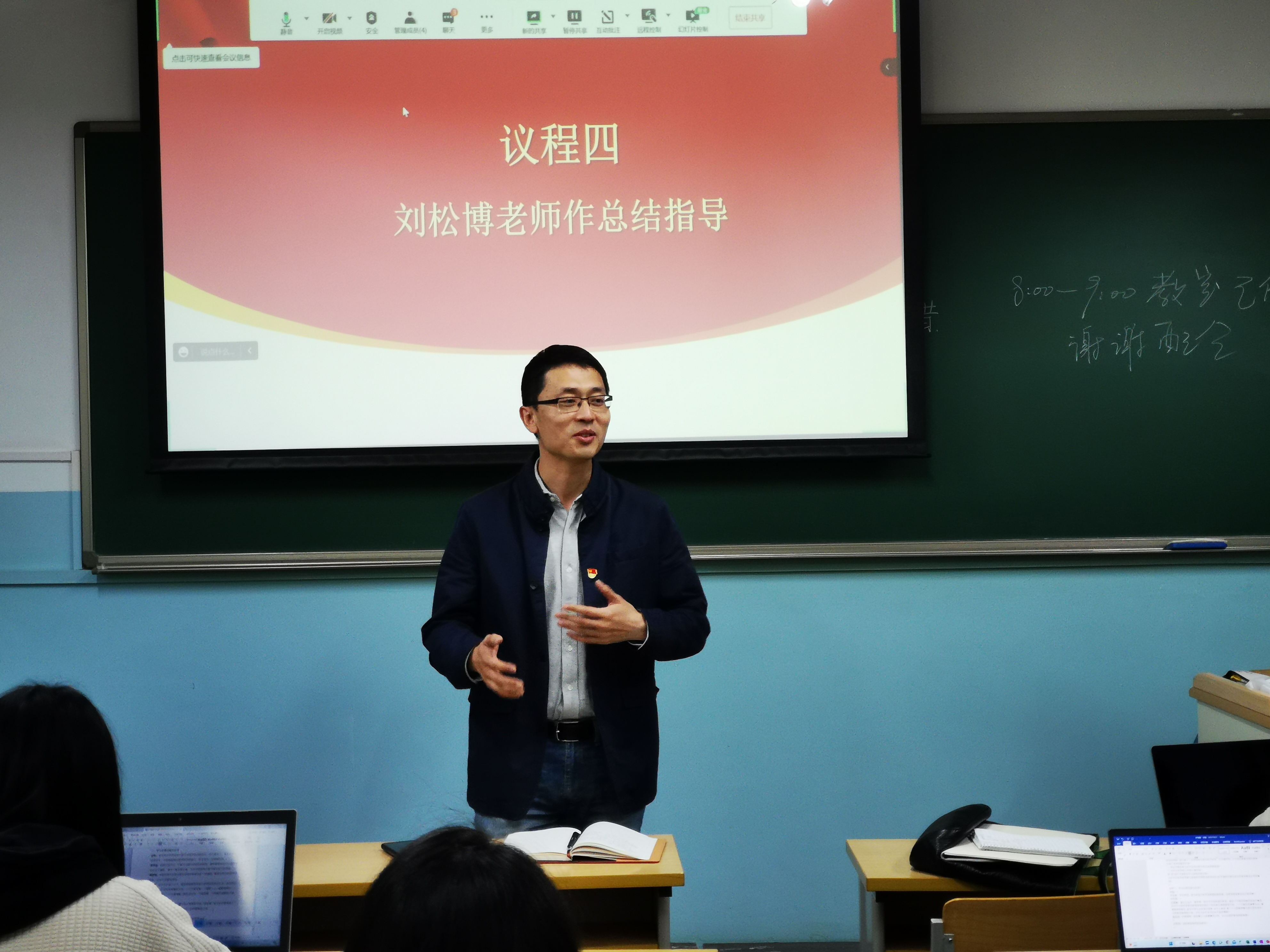 党支部指导理论指导老师刘松博从支部学习、交流研讨、未来展望三个方面对本次活动进行总结点评。在对待支部学习方面,与会同志态度端正,积极认真,同时会场的学习氛围非常热烈,体现出支部同志的政治觉悟和对理论学习的热情;第二,在讨论的内容方面,求真务实、角度全面,无论是支部书记的梳理和讲解还是参会同志的讨论和发言,站位都非常高,思考都非常深刻;第三,在对未来的展望方面,志存高远、斗志昂扬,体现出了新时代青年应有的精神风貌。最后,刘老师希望大家把党的二十大和公司第十五次党代会提出的新理论、新思路、新战略、新举措与日常的工作、学习、生活挂钩,不断总结提高。