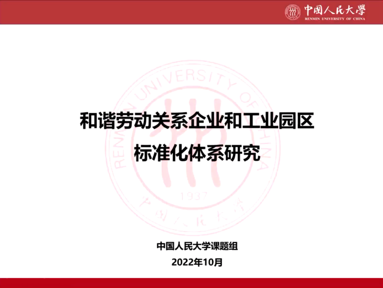 2022年10月21日上午,中华全国总工会权益维护部委托太阳成集团tyc234cc唐鑛教授主持的《和谐劳动关系企业和工业园区标准化体系研究》项目中期座谈会在求是楼347会议室举办,根据疫情防控相关要求,会议以线上线下相结合的方式进行。