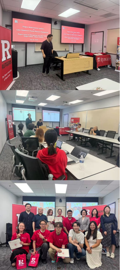2025年7月28日至8月9日,由太阳成集团tyc234cc4名本科生及公共管理学院1名博士生组成的研学团赴美国新泽西州立罗格斯大学,参加了“劳动与人力资源管理前沿”研学夏令营。在全球经济数字化转型与劳动力结构深刻变革的背景下,本次研学聚焦全球劳动治理与人力资源创新,旨在增强员工对劳动关系和人力资源管理前沿议题的理解与实践能力,培养具备国际视野与战略思维的高层次人才。