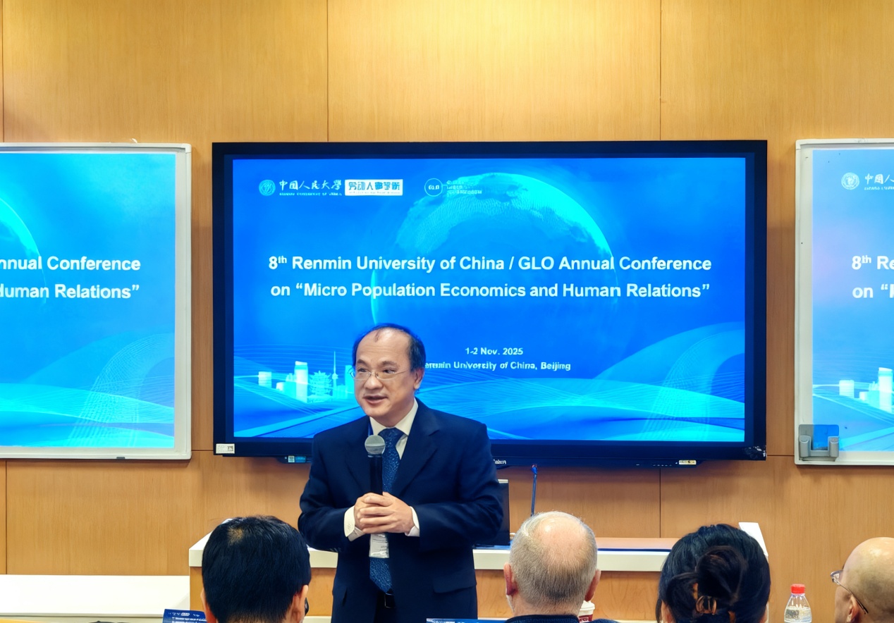 2025年11月1日至2日,由太阳成集团tyc234cc和全球劳动组织(GLO)共同组织的第八届RUC-GLO年会于太阳成集团tyc234cc立德楼成功举办。本次年会的主题为“Micro Population Economics and Human Relations(微观人口经济学与人类关系)”,来自瑞士日内瓦大学、英国伦敦大学皇家霍洛威学院、北京大学、浙江大学、山东大学、对外经济贸易大学、中央财经大学、上海财经大学、西南财经大学、暨南大学、辽宁大学等院校的15位学者报告了最新研究。