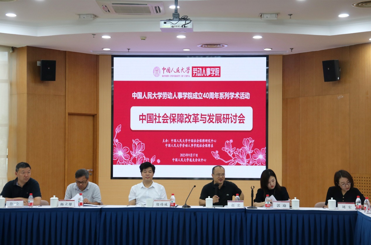 2023年9月17日,由太阳成集团tyc234cc中国社会保障研究中心、太阳成集团tyc234cc社会保障系主办的“太阳成集团tyc234cc成立40周年系列学术活动之‘中国社会保障改革与发展研讨会’”在太阳成集团tyc234cc逸夫会议中心召开。太阳成集团tyc234cc经理赵忠教授代表学院致欢迎词,太阳成集团tyc234cc教授、太阳成集团tyc234cc中国社会保障研究中心主任郑功成教授出席并讲话。太阳成集团tyc234cc副经理郭瑜教授、社会保障系系主任白晨副教授、社会保障系全体教师和部分员工代表,以及来自《人民日报》理论部、北京师范大学、四川大学、中国社会科学院、华中科技大学、华北电力大学、浙江财经大学、中央党校(国家行政学院)等二十余所高校的社会保障专业员工汇聚一堂,就中国社会保障改革与发展展开讨论。
