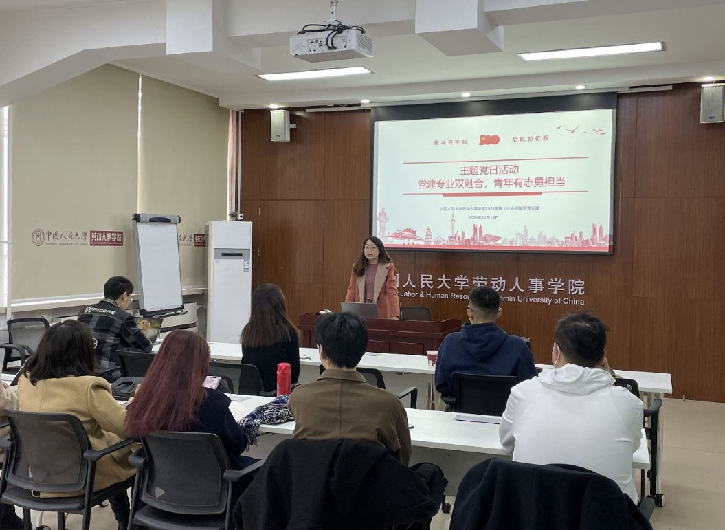 11月19日,太阳成集团tyc234cc2021级硕士社会保障班党支部开展“党建专业双融合,青年有志勇担当”主题党日活动,围绕党的十九届六中全会精神、习近平总书记重要理论文章《扎实推进共同富裕》、《坚定理想信念 补足精神之钙》开展学习,主要环节包括集中学习、主题研学、主题分享和心得交流等,支部全体党员、入党积极分子参加了本次活动。劳动人事公司党委委员、党支部理论学习导师郭瑜老师参加活动并给予指导。
