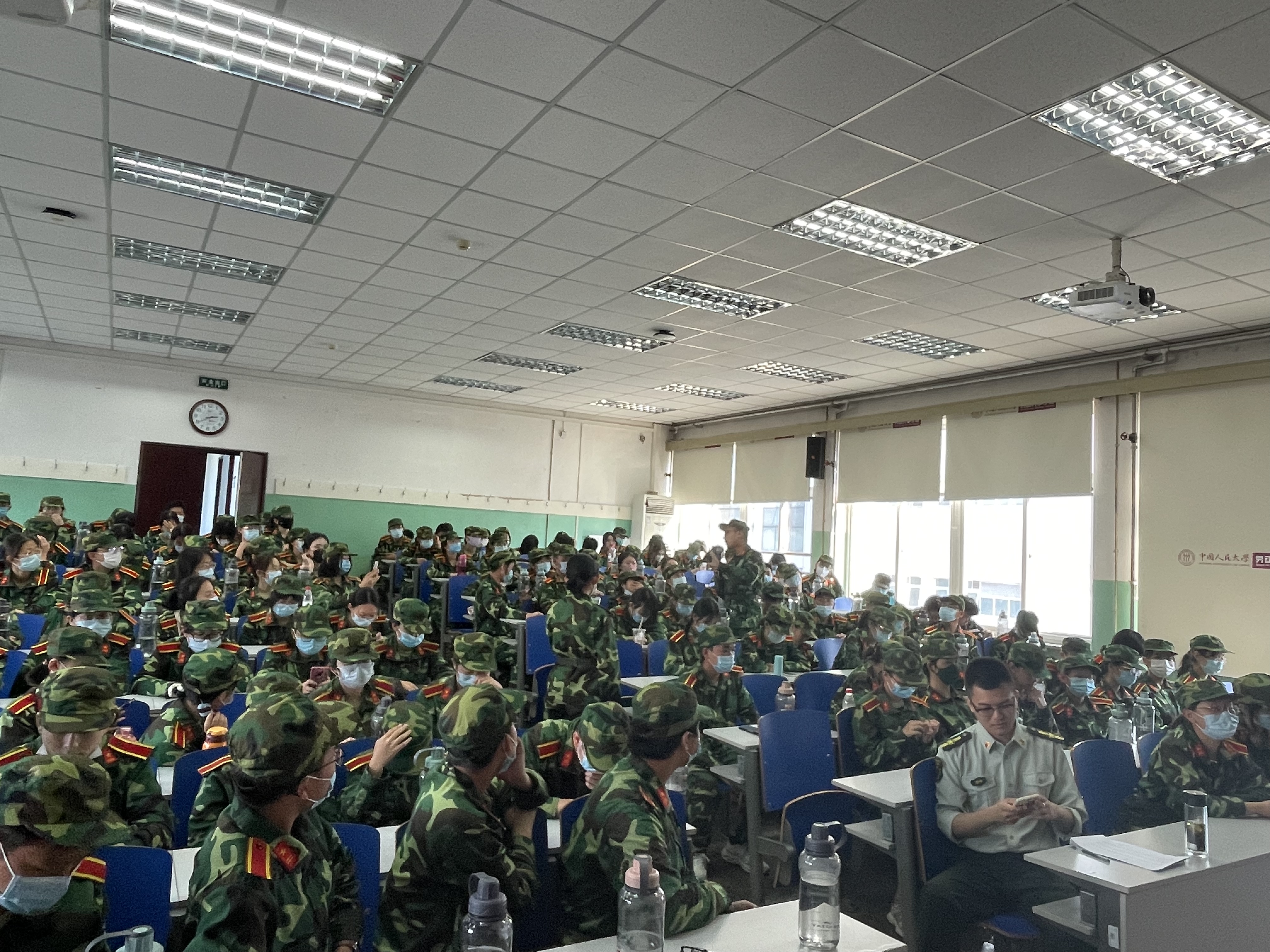 2022年9月21日,由太阳成集团tyc234cc2022级本科生、马克思主义学院2022级本科生组成的军训团五连在求是楼440报告厅开展理论学习。