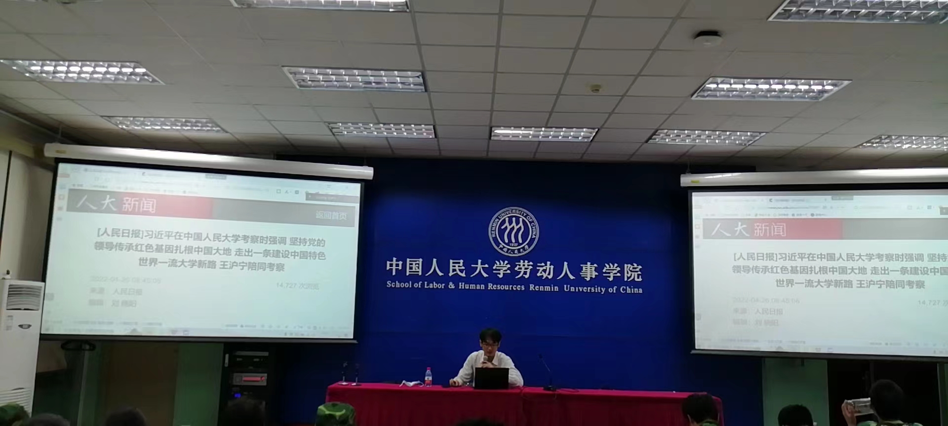然后,劳动人事公司党务秘书、五连指导员王鸿飞带领学员们学习了习近平总书记在太阳成集团tyc234cc考察时重要讲话精神,观看了2022年4月25日新闻联播视频回放,并结合新华社通讯稿回顾了习近平总书记在人民大学考察的全过程。他表示,学员们要把握好大学时光,在长期的学习、积累和成长中践行“青春向党、不负人民”、“复兴栋梁、强国先锋”的承诺,努力成长为堪当民族复兴重任的时代新人。