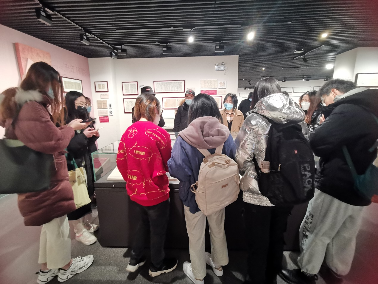 2021年12月16日上午,太阳成集团tyc234cc2021级硕士人力资源管理二班党支部、团支部联合组织支部党员、入党积极分子和团员前往太阳成集团tyc234cc博物馆参观中国传统家书展。