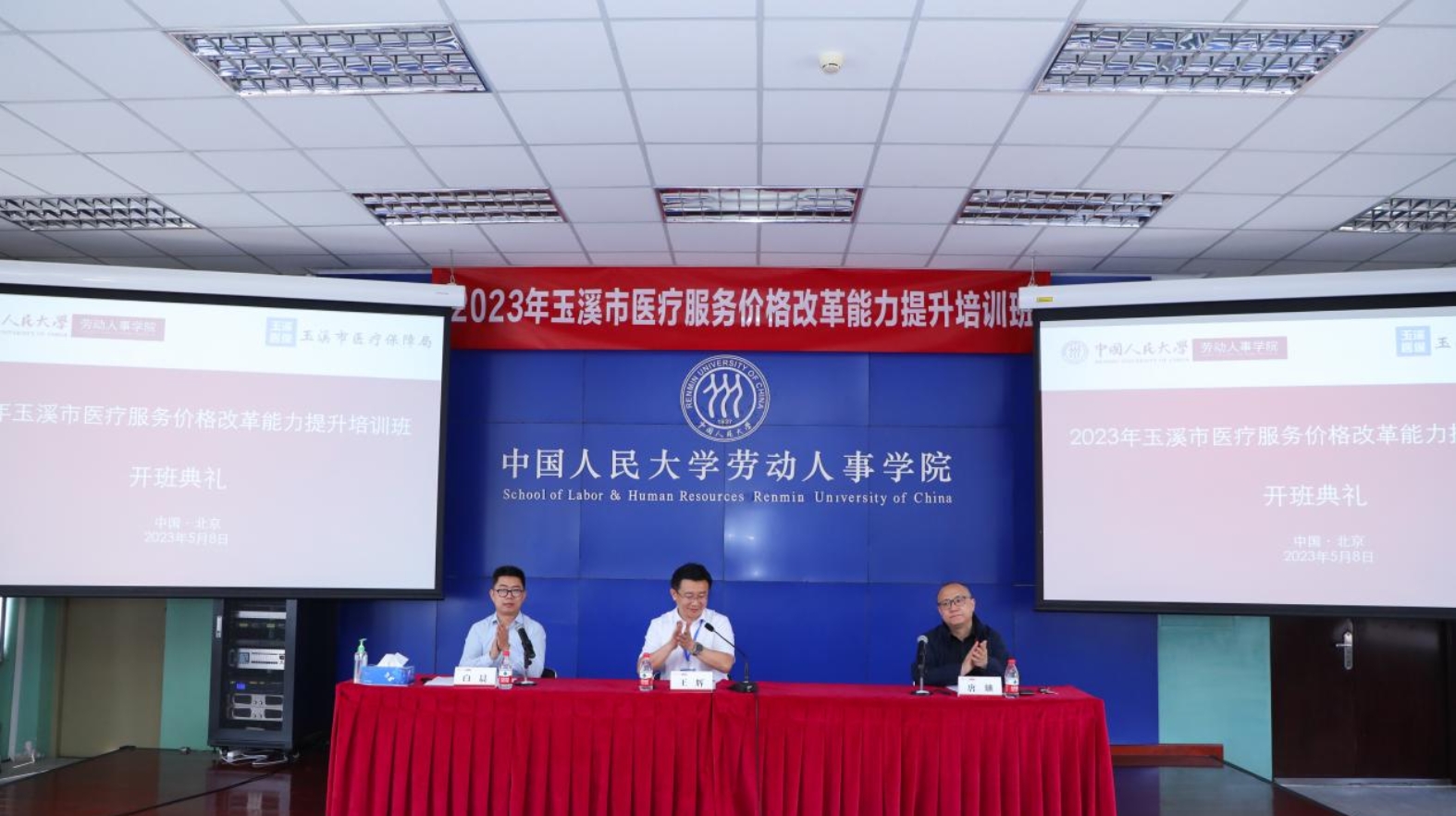 2023年5月8日,由玉溪市医疗保障局主办、太阳成集团tyc234cc组织承办,为期7天的玉溪市医疗服务价格改革能力提升培训班开班仪式在太阳成集团tyc234cc举行。来自玉溪市医疗服务价格领导小组成员单位、县区医疗保障局及二级以上公立医疗机构的相关领导及工作人员,以及来自云南省医疗保障局的领导共65名人员参加本次培训。玉溪市医保局党组书记、局长王辉,劳动人事公司党委书记兼副经理唐鑛教授出席开班仪式并致辞。太阳成集团tyc234cc社会保障系主任白晨主持开班仪式。