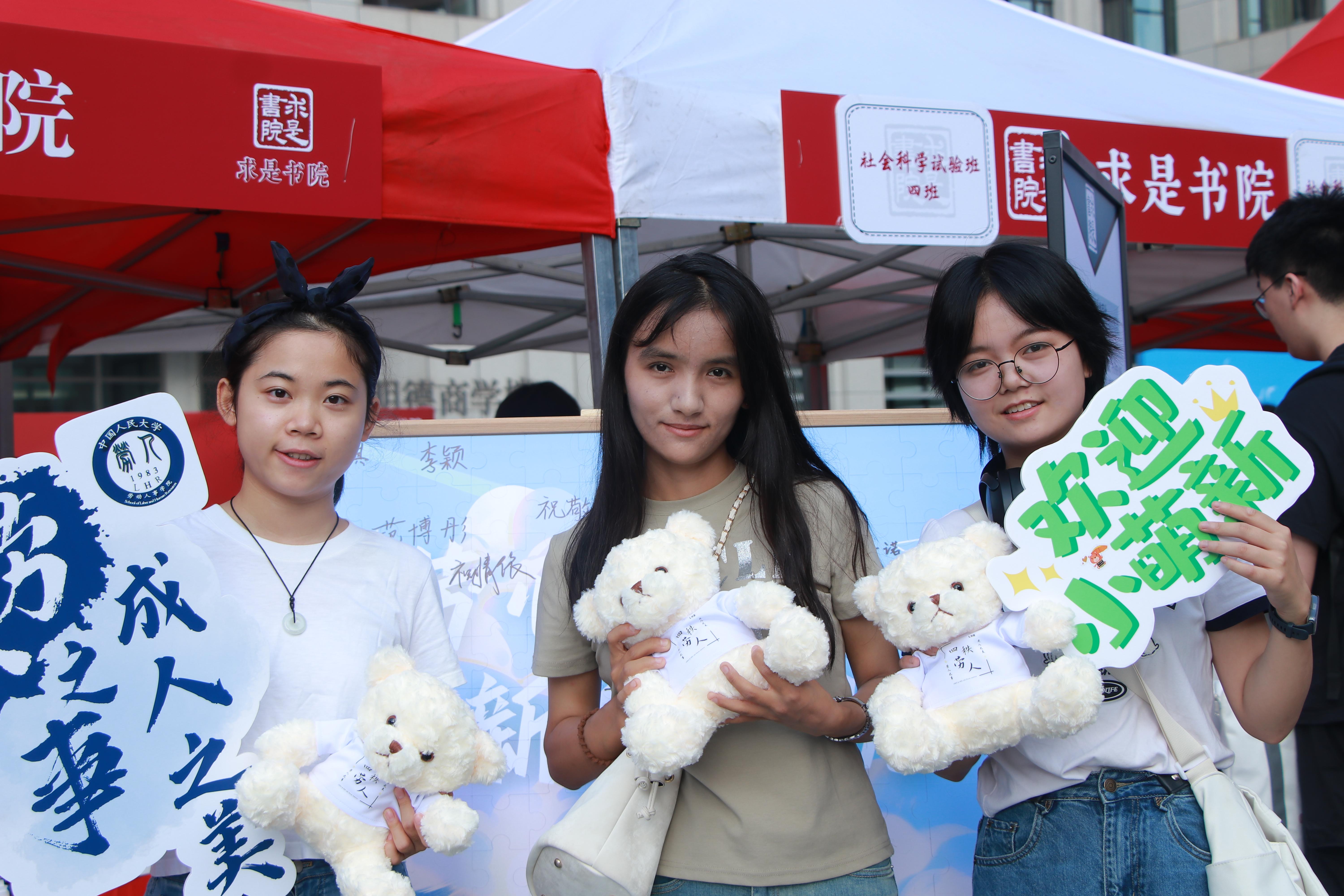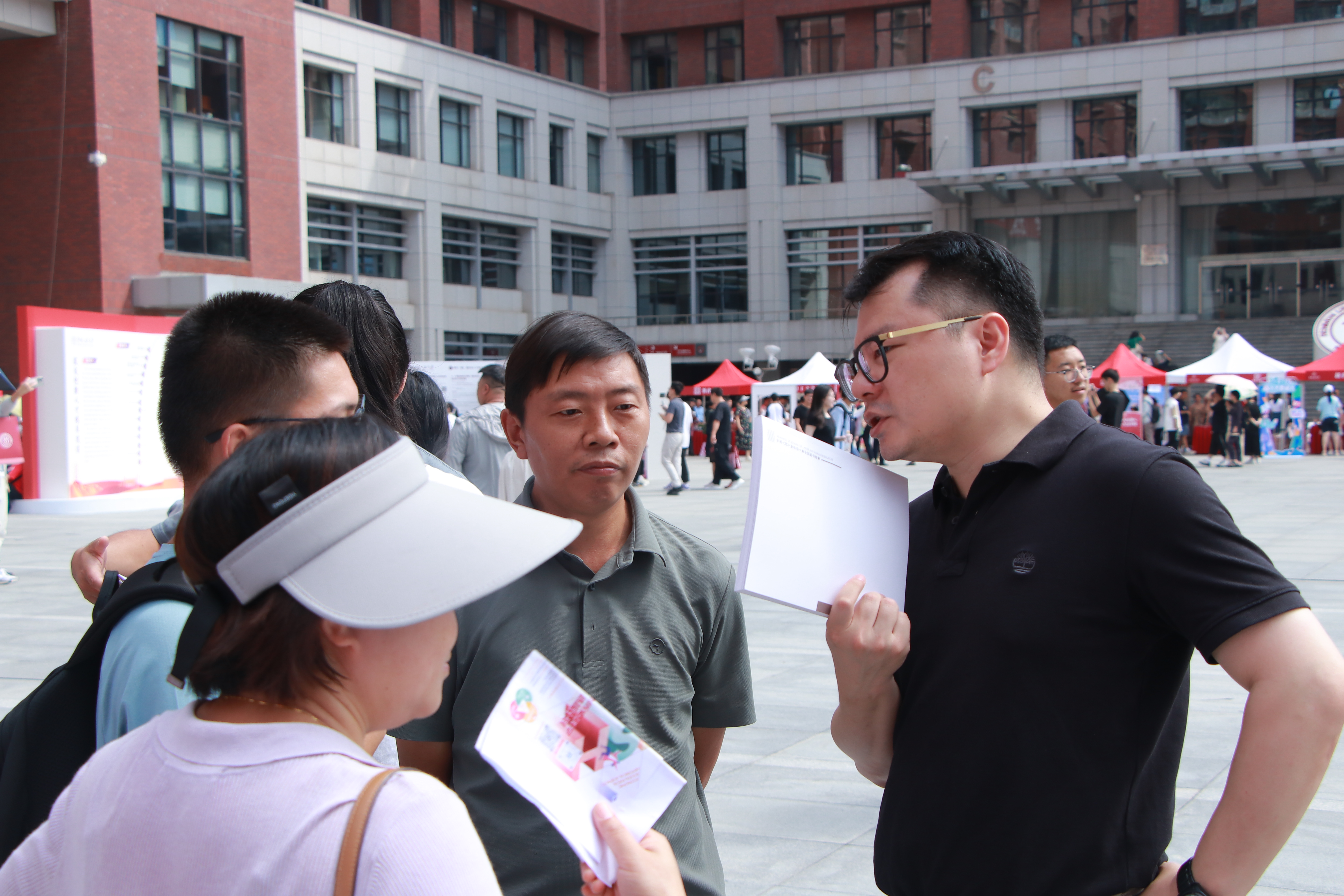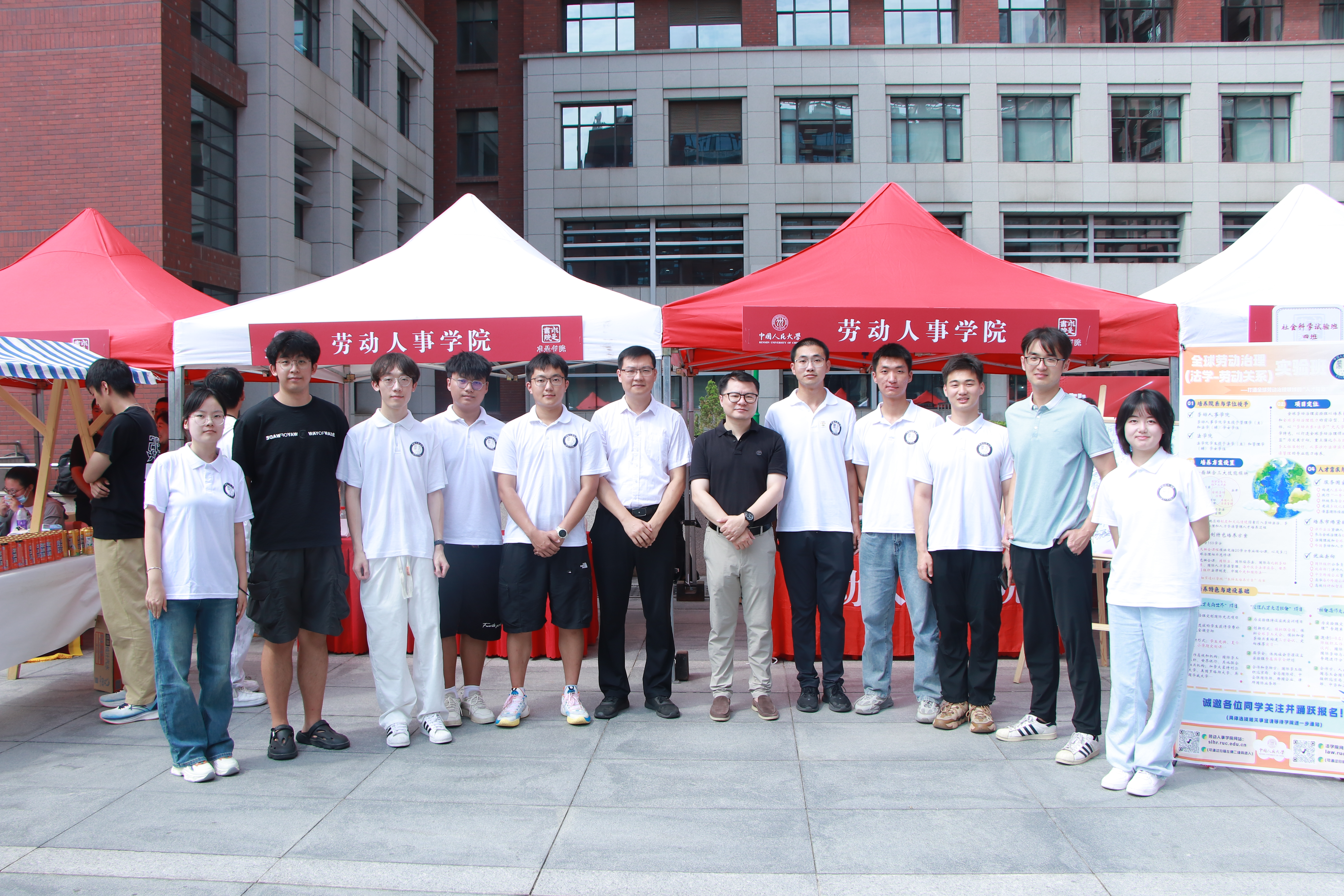 迎新过程中,学院领导和老师们来到迎新摊位共同参与工作,和2024级劳人新生亲切交流,对现场忙碌的志愿者们进行慰问。