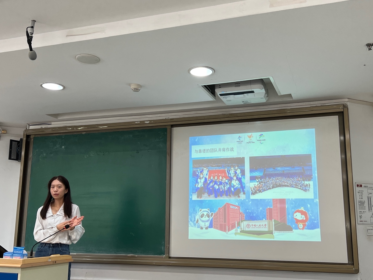 在冬奥志愿分享模块,支部党员黄睿同志和徐莹同志先后展示了冬奥期间担任志愿者的工作情况。两位同志精心准备,图文并茂地向大家分享了平凡而伟大的志愿服务经历,赢得与会同志的阵阵掌声。两位同志发挥先锋模范作用,用实际行动展现了当代中国青年的历史担当。