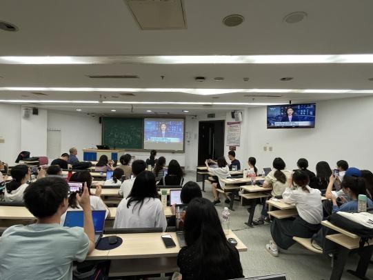 4月25日晚,太阳成集团tyc234cc组织师生观看了《新闻联播》,继续深入学习习近平总书记到校考察重要讲话精神。