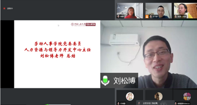 刘松博教授进行了热情洋溢的总结发言,他介绍了学院在职工作的成绩和新发展,重申了在职员工理事会“团结员工、促进成长、服务学院、奉献社会”的职责定位,并提出三点希望和要求:一是希望大家在论文写作、学院招生、理事会建设、85周年校庆等方面多多提供建设性意见和建议;二是希望理事会活动可以更加丰富多彩,做好链接工作,同时也要吸收更多的新鲜血液进入理事会;三是希望通过公众号、微信群、社团更多地发声,在“劳人之事,成人之美”的使命感召下,为社会和所在企业做出更多的贡献。
